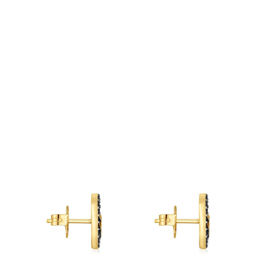 Серьги TOUS Camille из серебра 925 пробы с покрытием из 18-каратного желтого золота и круглыми фасетированными шпинелями черного цвета. Размер сережек: 11 мм. Застежка-клапан. Изделие изготовлено из серебра 925 пробы с покрытием из золота 18-23 карат толщиной 3 микрон. Такое качество гарантирует большую долговечность украшения.