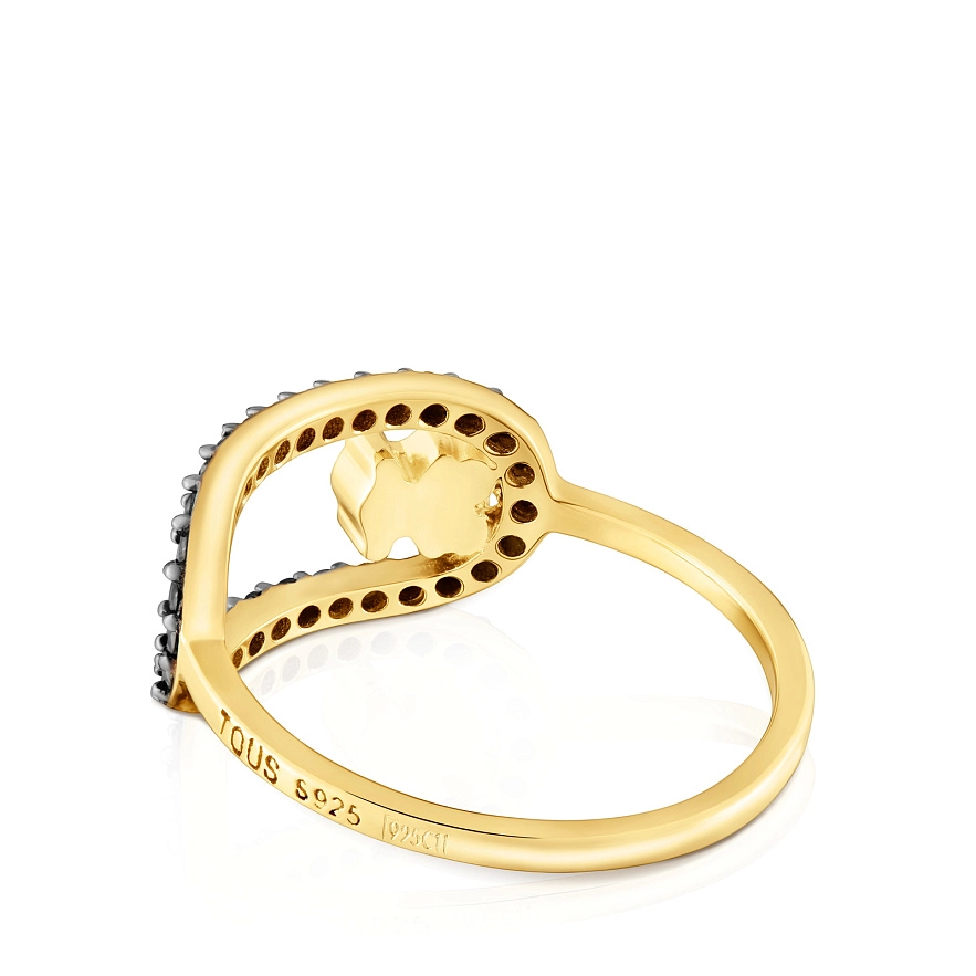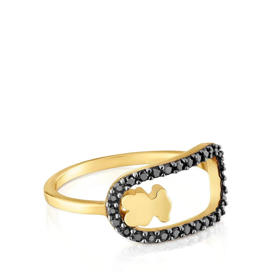 Кольцо TOUS Camille из серебра 925 пробы с 18-каратным золотым покрытием и фасетированными круглыми шпинелями черного цвета с мотивом медведя. Размер мотива: 15 мм. Изделие изготовлено из серебра 925 пробы с 18-23-каратным золотым покрытием толщиной 3 микрона. Такое качество гарантирует большую долговечность украшения.