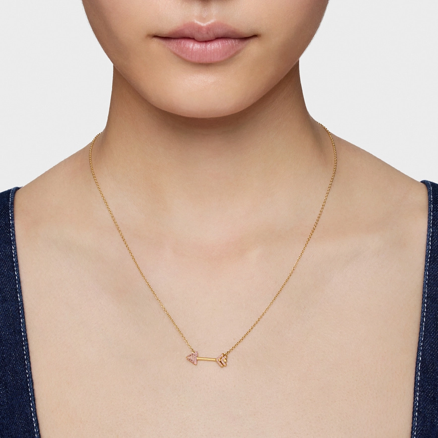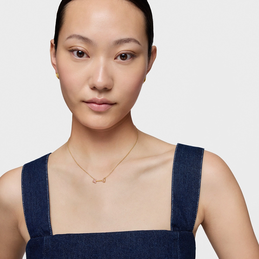 Колье TOUS Flechazo из серебра 925 пробы с 18-каратным золотым покрытием с мотивом стрелы и ограненными круглыми родолитами. Длина колье: 45 см. Застежка-пружина. Изделие изготовлено из серебра 925 пробы с 18-23-каратным золотым покрытием толщиной 3 микрона. Такое качество гарантирует большую долговечность украшения.