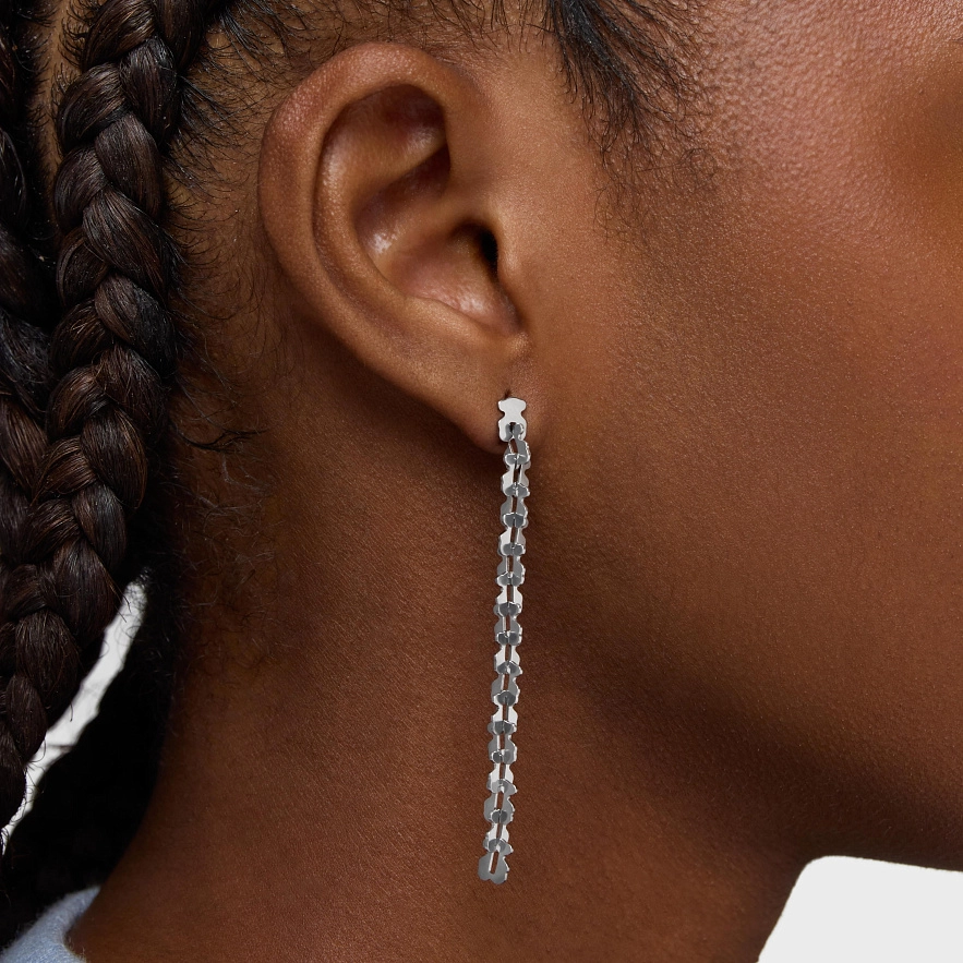 Длинные серьги TOUS Carrusel из нержавеющей стали с переплетенными мотивами медведей. Длина сережек: 65 мм. Толщина: 5,6 мм. Застежка-пусет.