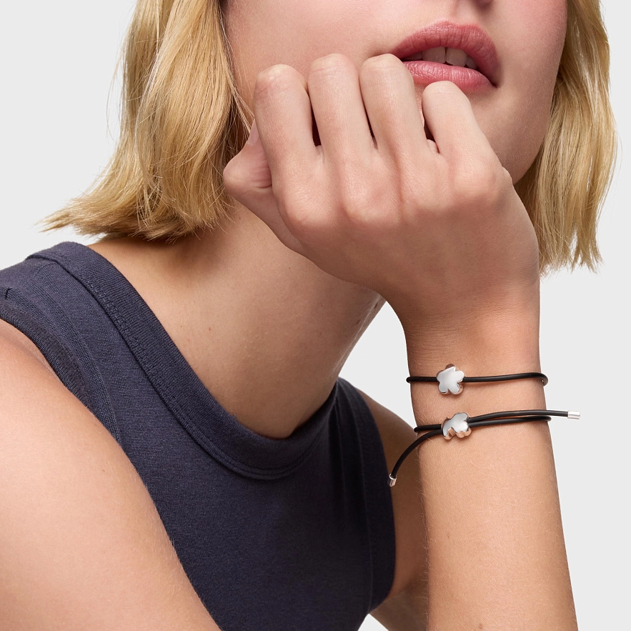 Браслет TOUS Bold Motif из серебра и чёрного каучука с цветочным мотивом. Длина браслета: 17,5 см. Размер подвески: 12 мм. Двойная застёжка.