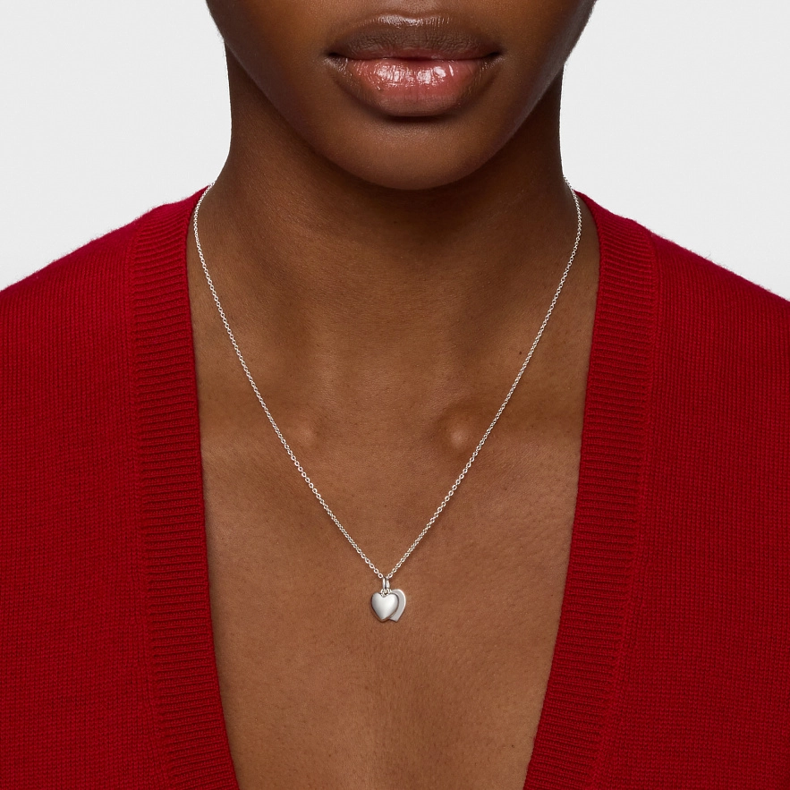 Колье TOUS Flechazo из серебра 925 пробы с мотивом двойного сердца. Размер подвески: 9 мм. Длина колье: 50 см. Застежка-бабочка.