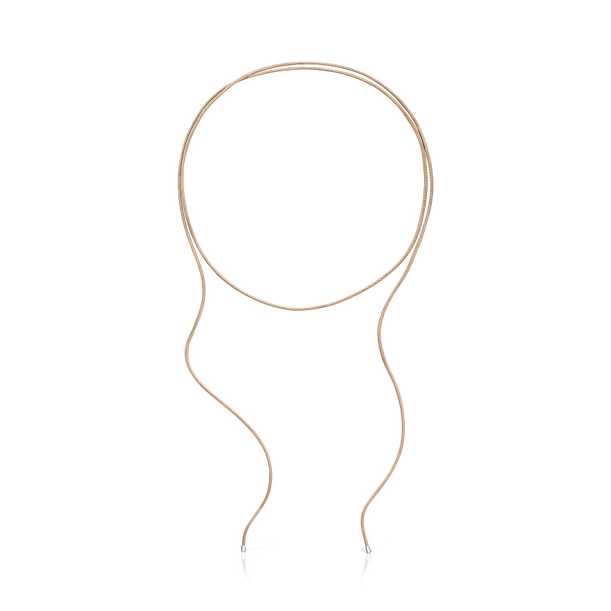 Длинное колье TOUS Basics из серебра и шнурка коричневого цвета. Толщина колье: 2 мм. Длина колье: 140 см. Примечание: в качестве застежки можно сочетать с кулонами из коллекции Hold или Hold Oval.