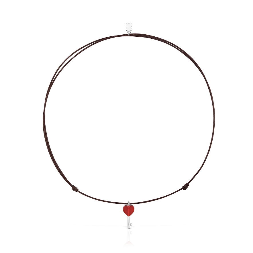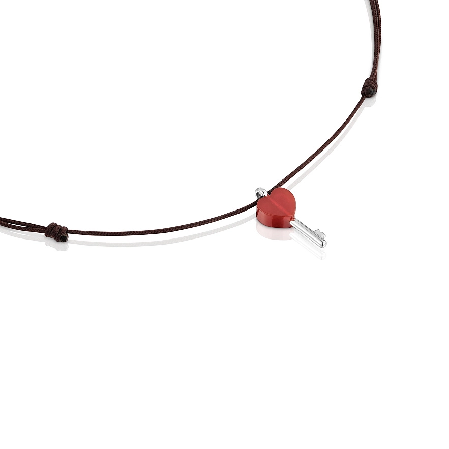 Колье TOUS Unlock из коричневого нейлона, граненого сердолика и серебра 925 пробы. Размер подвески: 20 мм. Длина ожерелья: 70 см. Регулируемая застежка-слайдер.