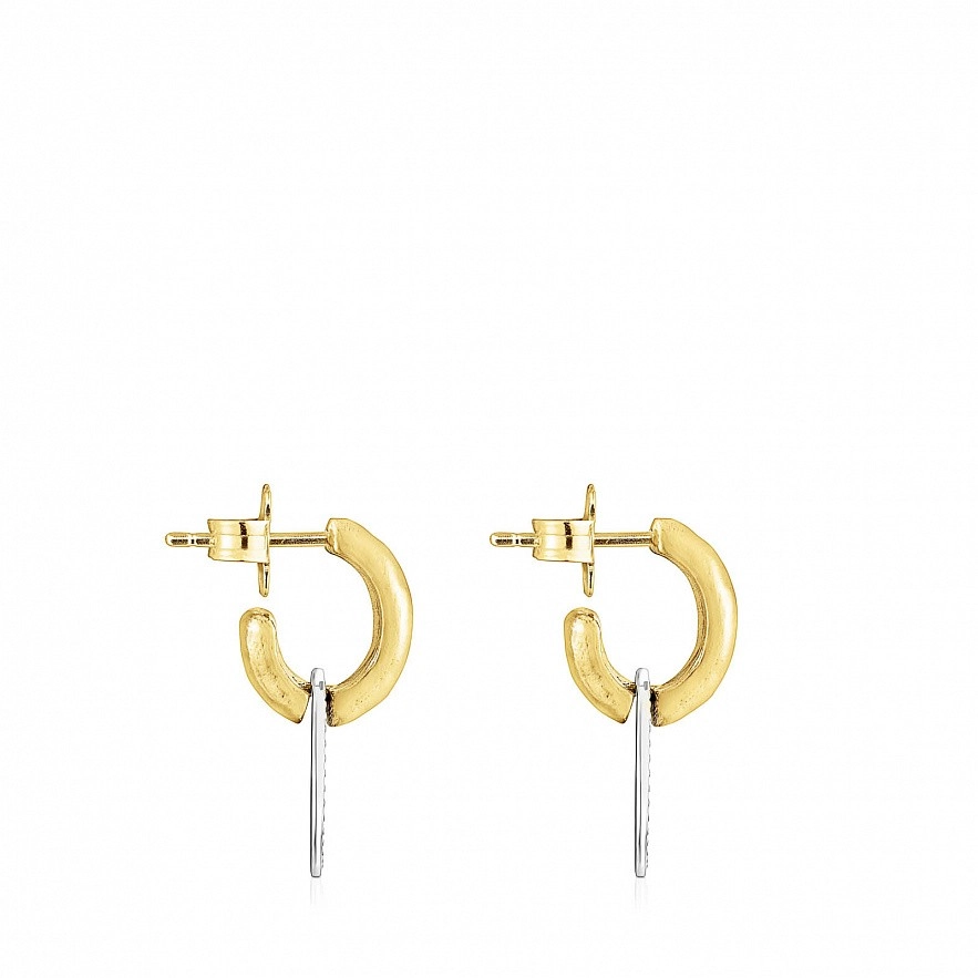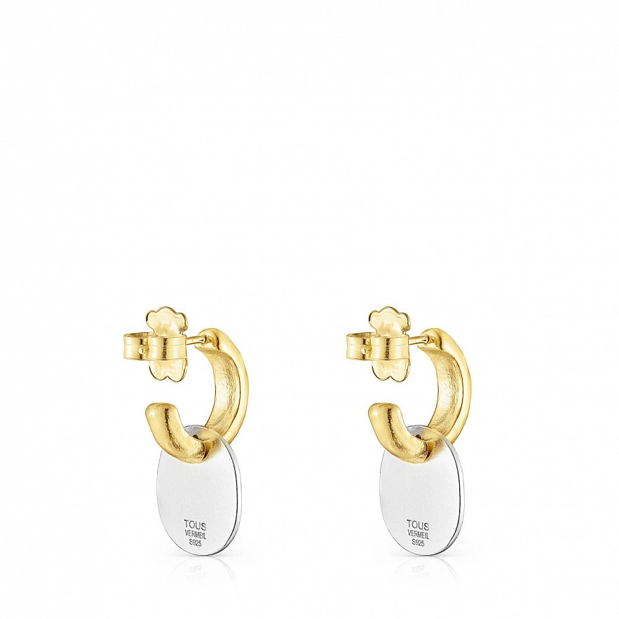 Серьги-кольца TOUS Oursin с кольцами диаметром 16 мм из вермеля из серебра, медальоном диаметром 16 мм с медведем из стерлингового серебра и черной эмали. Стерлинговое серебро, покрытое 18-каратным золотом толщиной от 3 до 5 микрон и без другого металла между ними. Техника изготовления: Литье.
