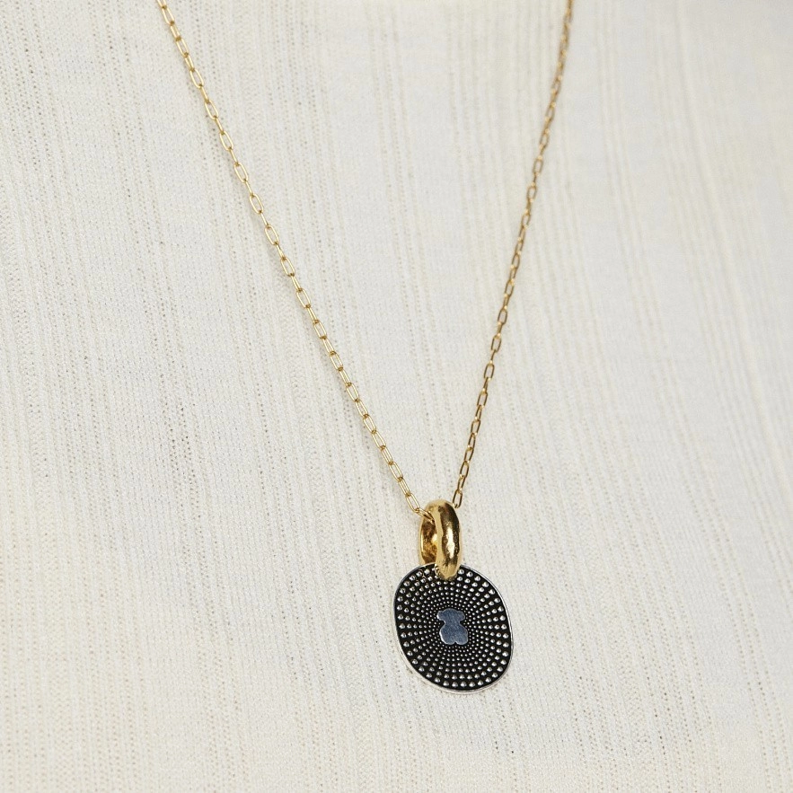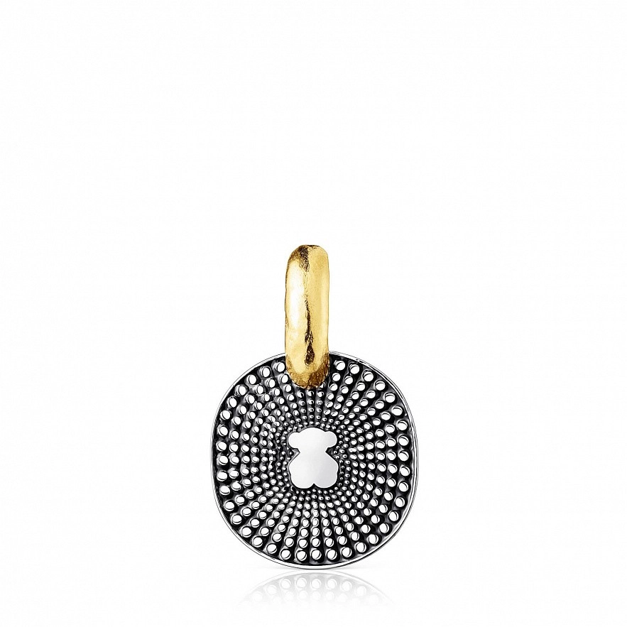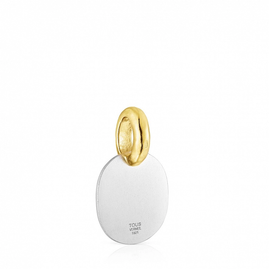 Кулон TOUS Oursin с мишкой и кольцом из серебра 925 пробы с покрытием Vermeil и черной эмалью размером 25 мм. Подвеска не включает в себя цепь. Vermeil : серебро с покрытием золота 18 карат.