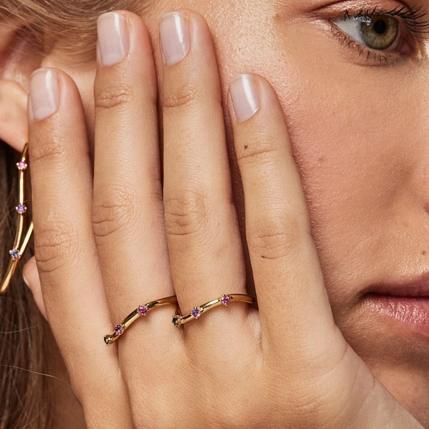 Кольцо TOUS Magic Nature из серебра 925 пробы с покрытием Vermeil с аметистом 2 мм, иолитом и рубином. Vermeil : серебро с покрытием золота 18 карат.