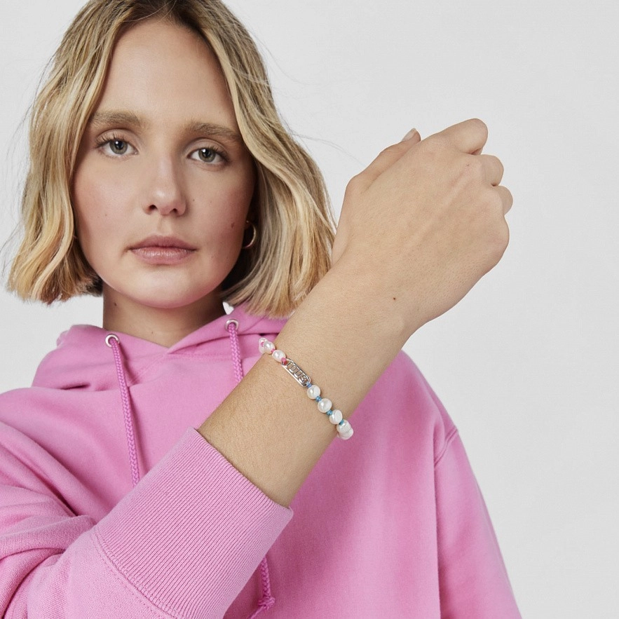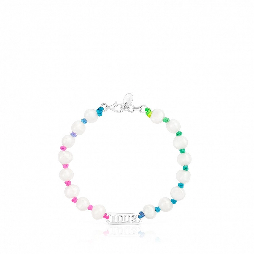 Браслет TOUS Logo из разноцветного нейлона с культивированным жемчугом и пластиной из стерлингового серебра. Размер культивированного жемчуга: 7-8 мм. Размер пластины: 6,6 х 18,5 мм. Длина браслета: 17,5 см. Застежка-лобстер.