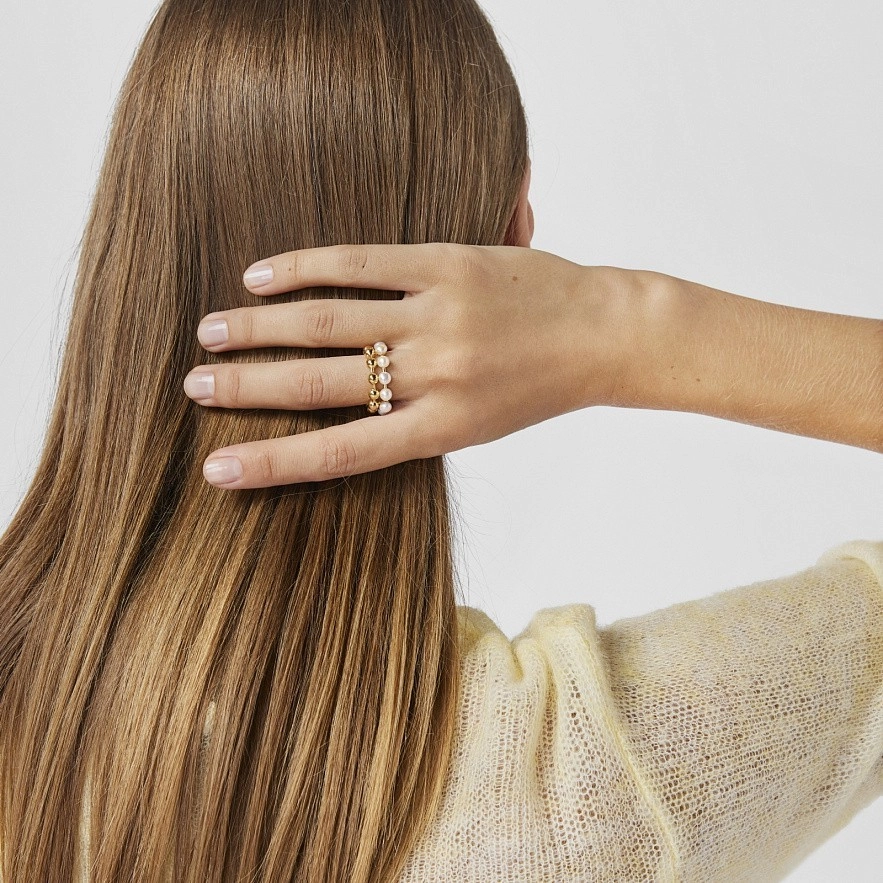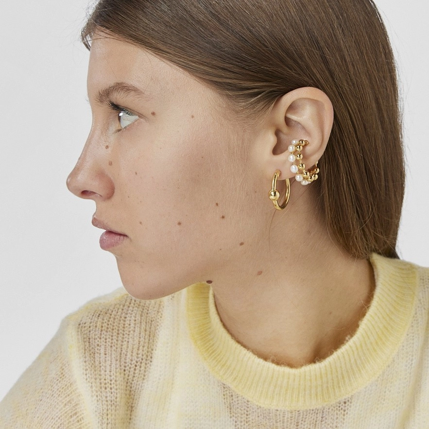 Кафа TOUS Gloss из серебра 925 пробы с покрытием Vermeil с одним кольцом с шариками и другим - с культивированным жемчугом. Диаметр шариков: 3,5 мм. Диаметр жемчужин: 4-4,5 мм. Диаметр кольца: 20 мм. Диаметр отверстия: 4 мм. Vermeil : серебро с покрытием золота 18 карат.