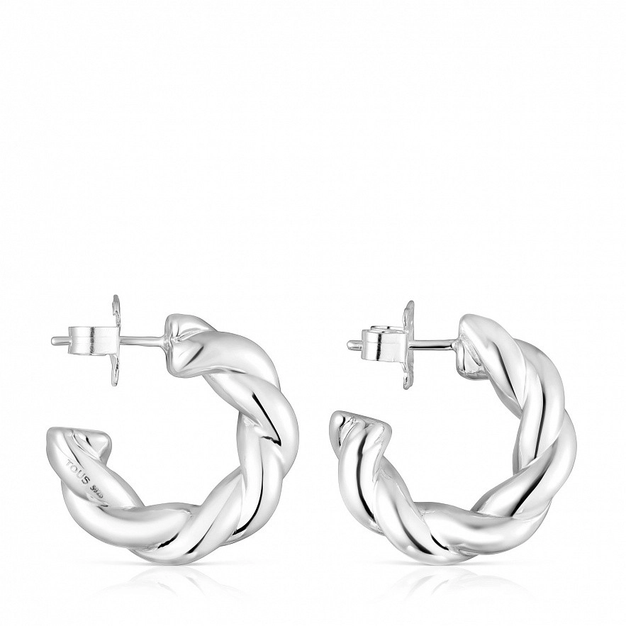 TOUS Twisted серьги-кольца из серебра 925 пробы. Размер серьги: 25мм. Застежка-пусет. Технология производства: Гальванопластика без внутреннего стержня.