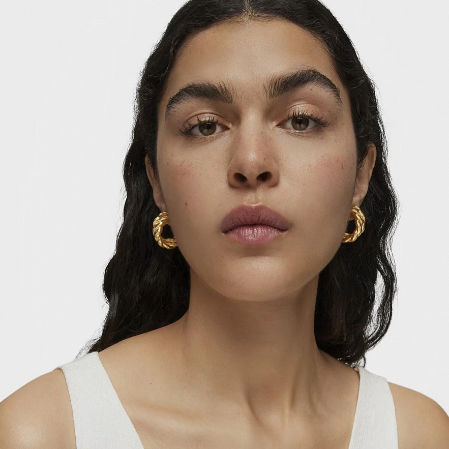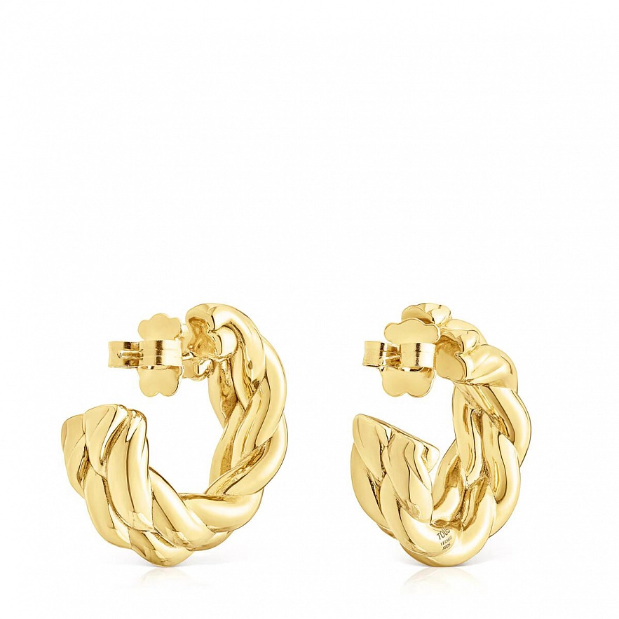 Серьги TOUS Twisted из серебра 925 пробы с покрытием Vermeil с двойными полосками, размером 25 мм. Техника изготовления: Гальванопластика.