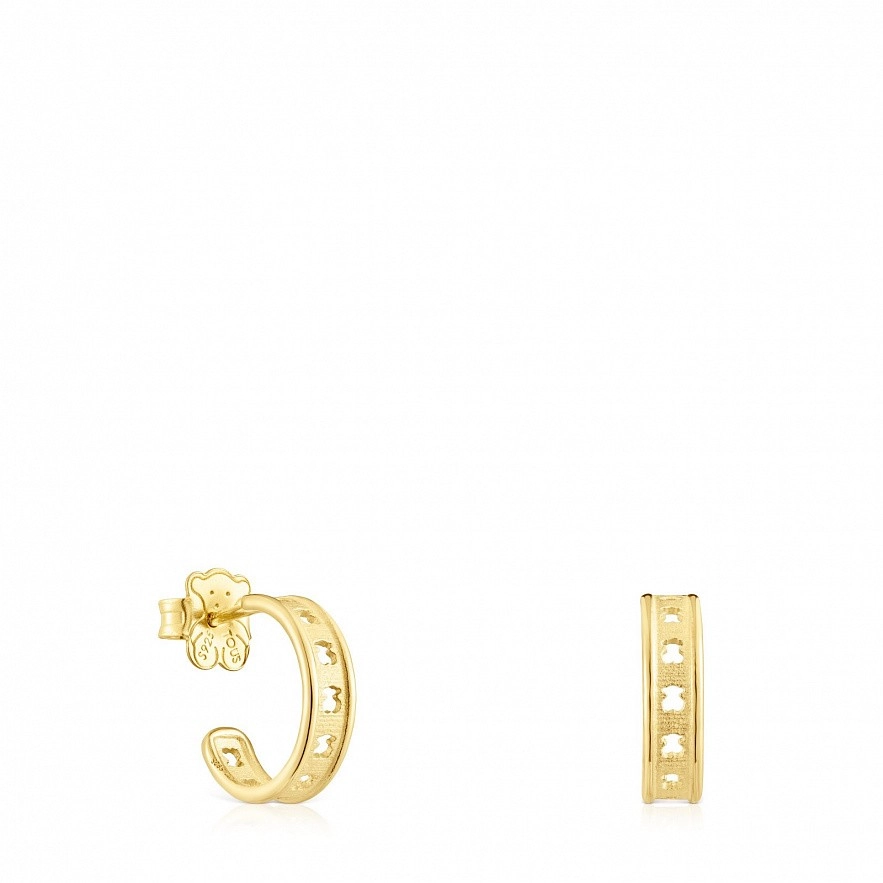 Серьги-кольца TOUS Bear Row из серебра 925 пробы с покрытием Vermeil размером ~11 мм с перфорированными силуэтами медведей. Застежка - пусет. Vermeil : серебро с покрытием золота 18 карат.