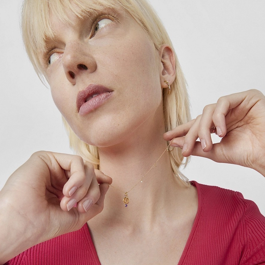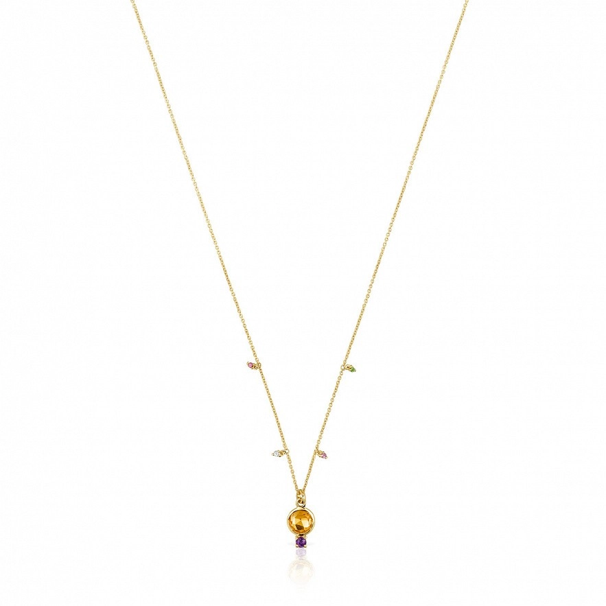 Колье TOUS Virtual Garden из золота 750 пробы с цитрином 7 мм и аметистом 3 мм. Детали из драгоценных камней вокруг цепочки: родолит, синий топаз, оранжевый сапфир и диопсид хрома. Размер деталей из драгоценных камней: 1,5 мм. Застежка - пружинное кольцо. Длина колье: 45 см.