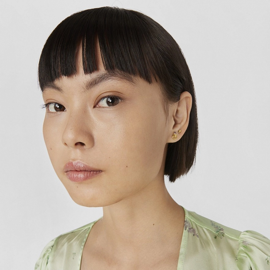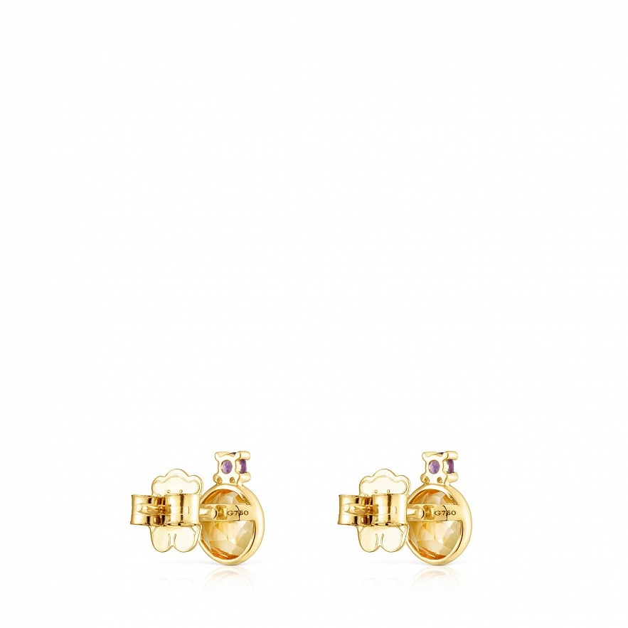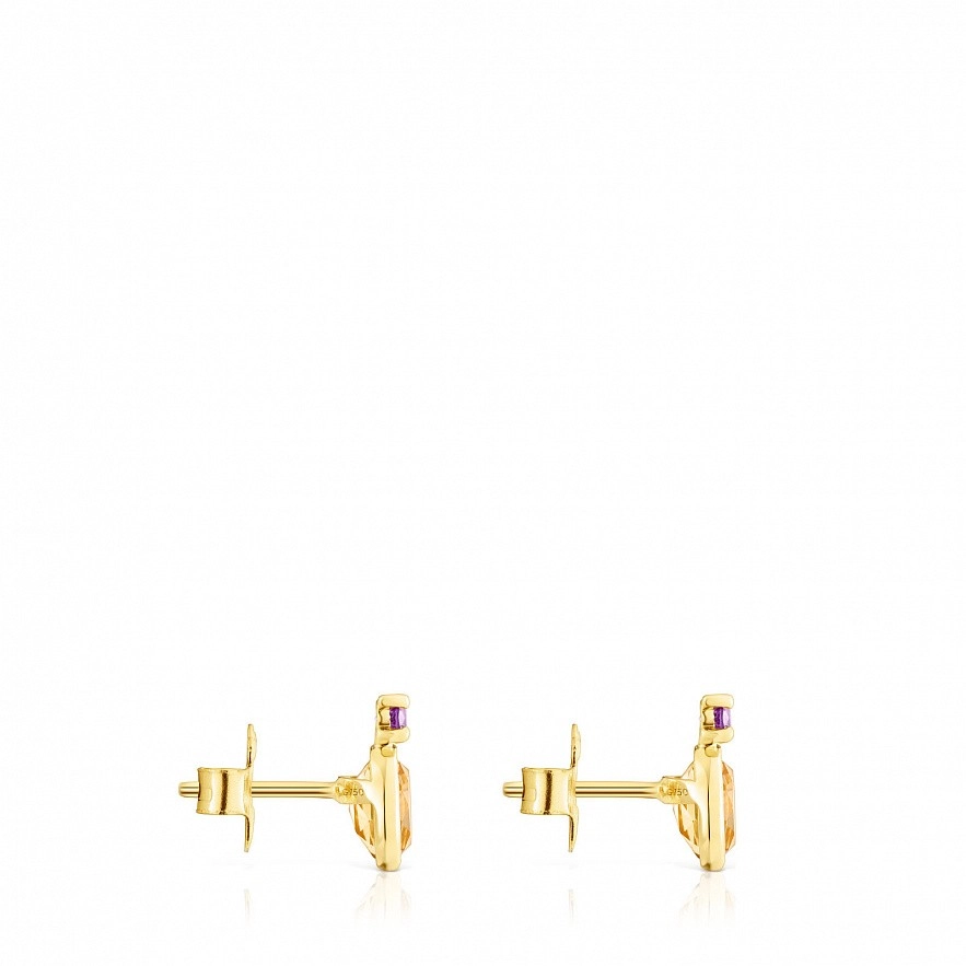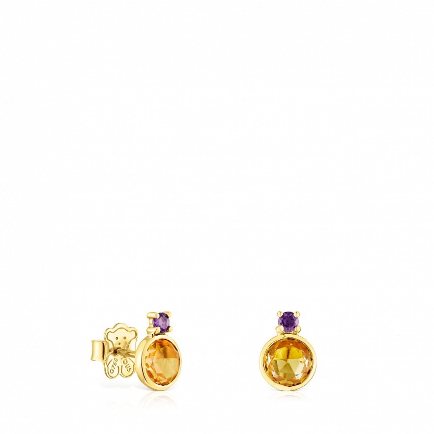 Серьги TOUS Virtual Garden из золота 750 пробы с цитрином 6 мм и аметистом 2,5 мм. Застежка-пусет.