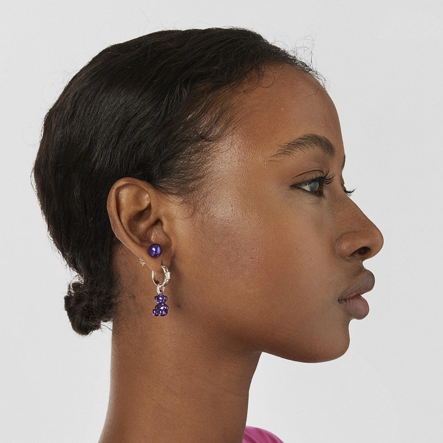 ММаленький кулон TOUS Bold Bear из лиловой стали и кольца из стерлингового серебра. Размер медведя: 11 мм. Без цепочки.