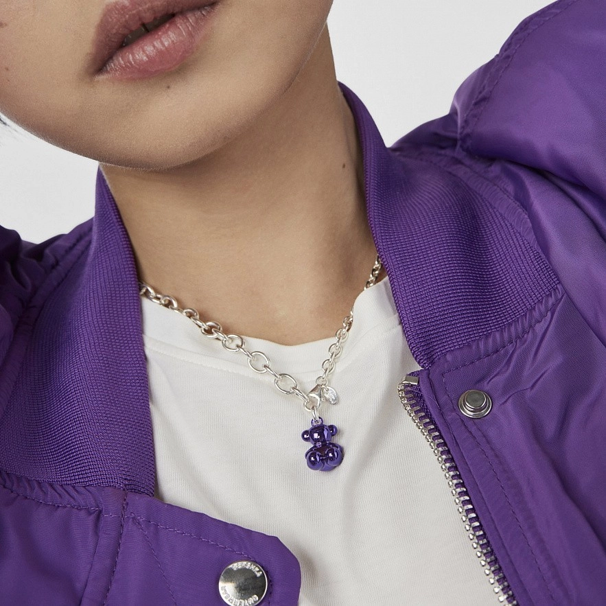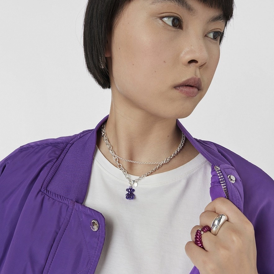 Кулон TOUS Bold Bear из лиловой стали и серебряного кольца. Размер медведя: 16 мм. Без цепочки.