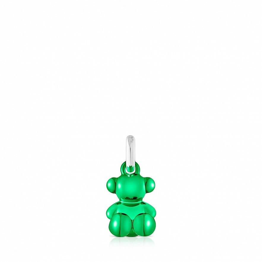 Маленький кулон TOUS Bold Bear из зеленой стали и серебряного кольца. Размер медведя: 11 мм. Без цепочки.
