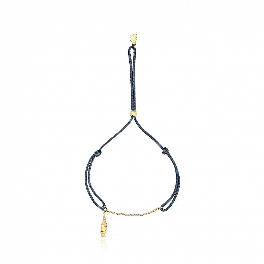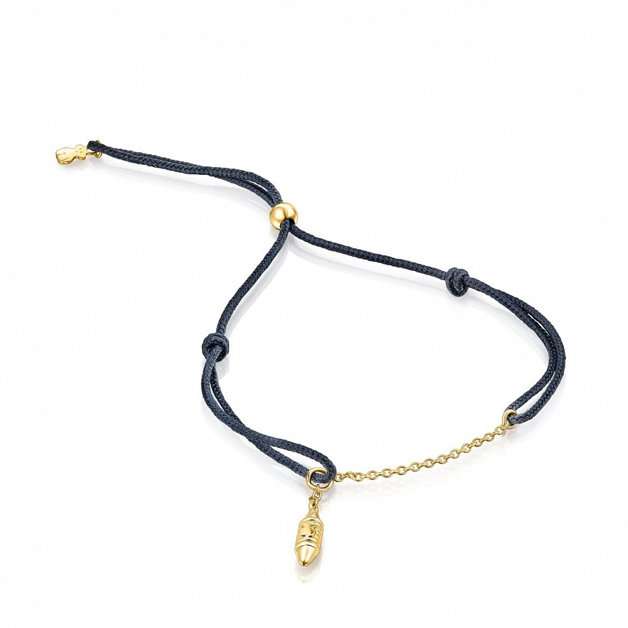 Браслет TOUS Lure из золота 750 пробы и нейлона с цепочкой и подвесным элементом с мишкой 2,8 мм. Размер элемента: 10 мм. Застежка-слайдер.