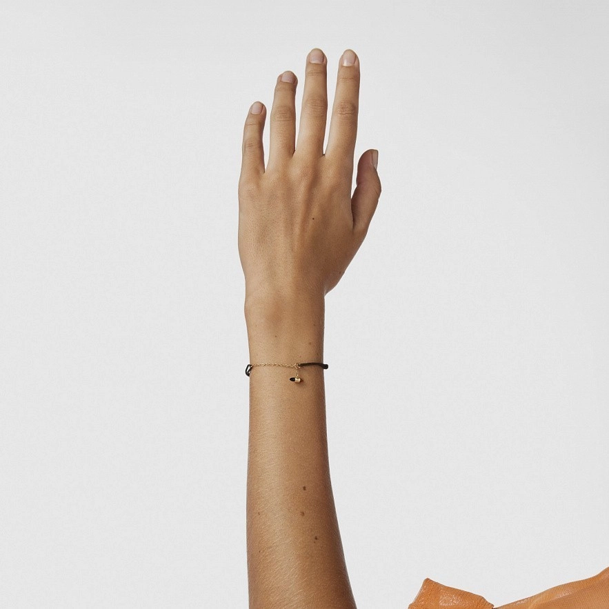 Браслет TOUS Lure из золота 750 пробы и нейлона с цепочкой и подвесным золотым шармом с мишкой 2,8 мм, сердоликом и ониксом. Размер драгоценных камней: 5 х 2,5 мм. Длина мотива на кулоне: 6 мм. Застежка-слайдер.