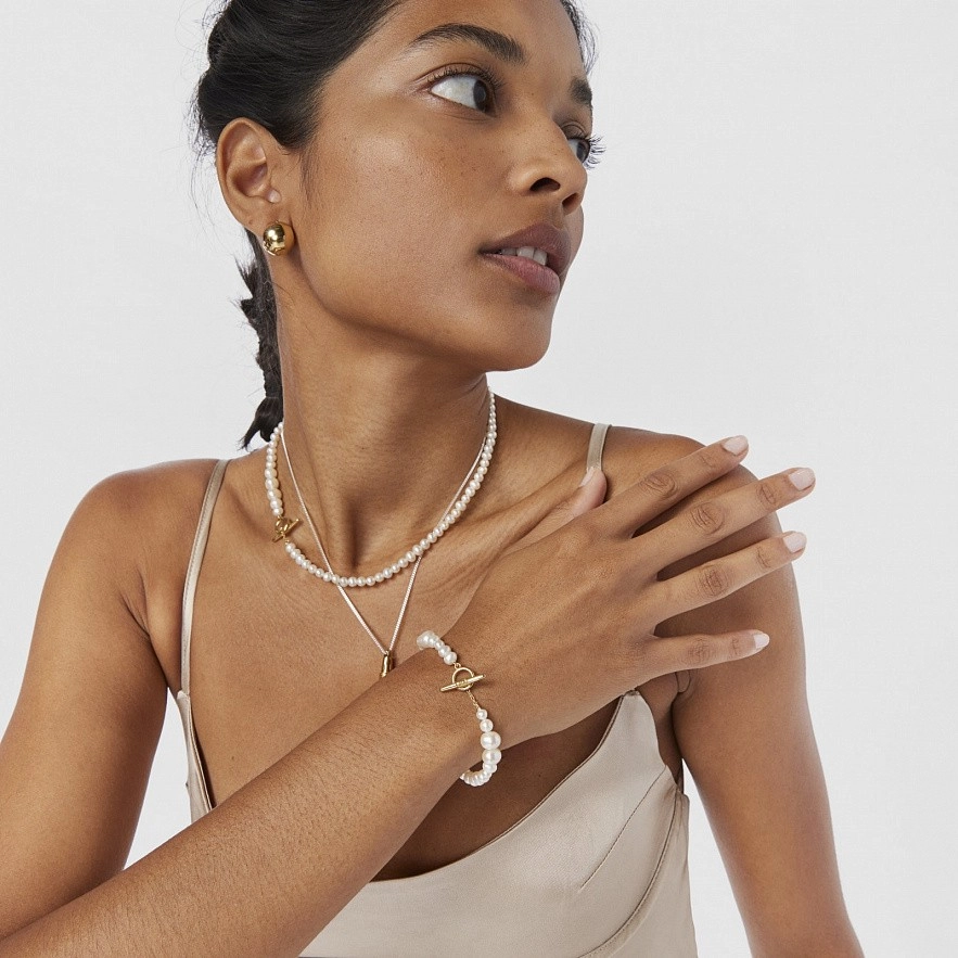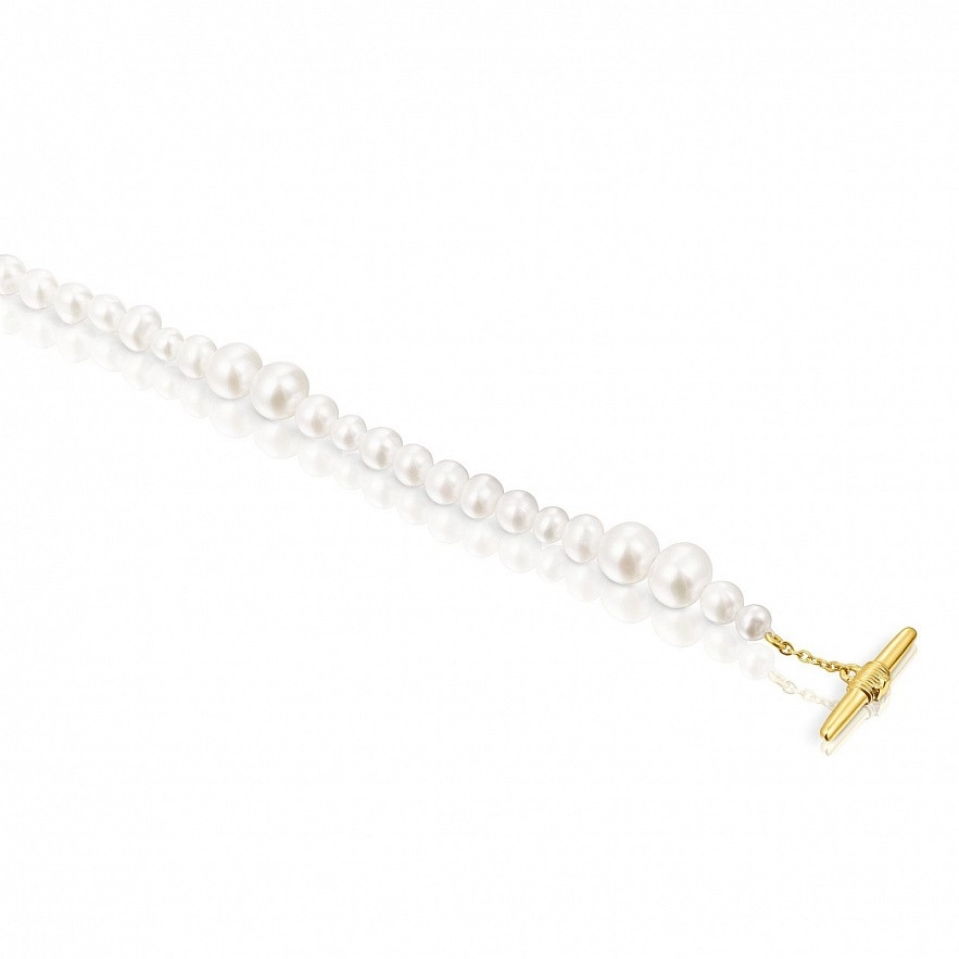 Браслет TOUS Lure из культивированного жемчуга с застежкой из серебра 925 пробы с покрытием Vermeil и с 3 мм деталью мишки в центре застежки. Размер культивированного жемчуга: 4-7 мм. Длина браслета: 20 см. Vermeil : серебро с покрытием золота 18 карат.
