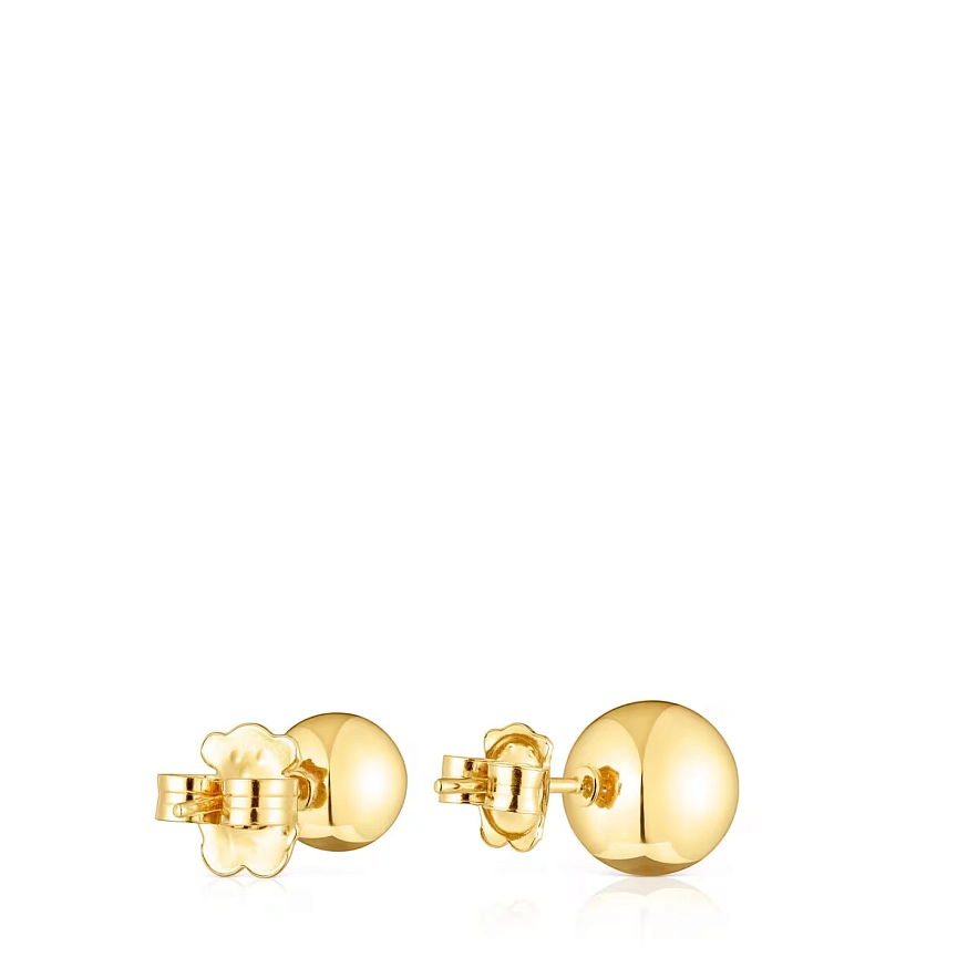 Серьги TOUS Plump из серебра 925 пробы с покрытием Vermeil с шарообразной деталью. Диаметр шариков: 8 и 10 мм. На одном из них выгравирован мишка размером 3 мм. Застежка-пусет. Vermeil : серебро с покрытием золота 18 карат.