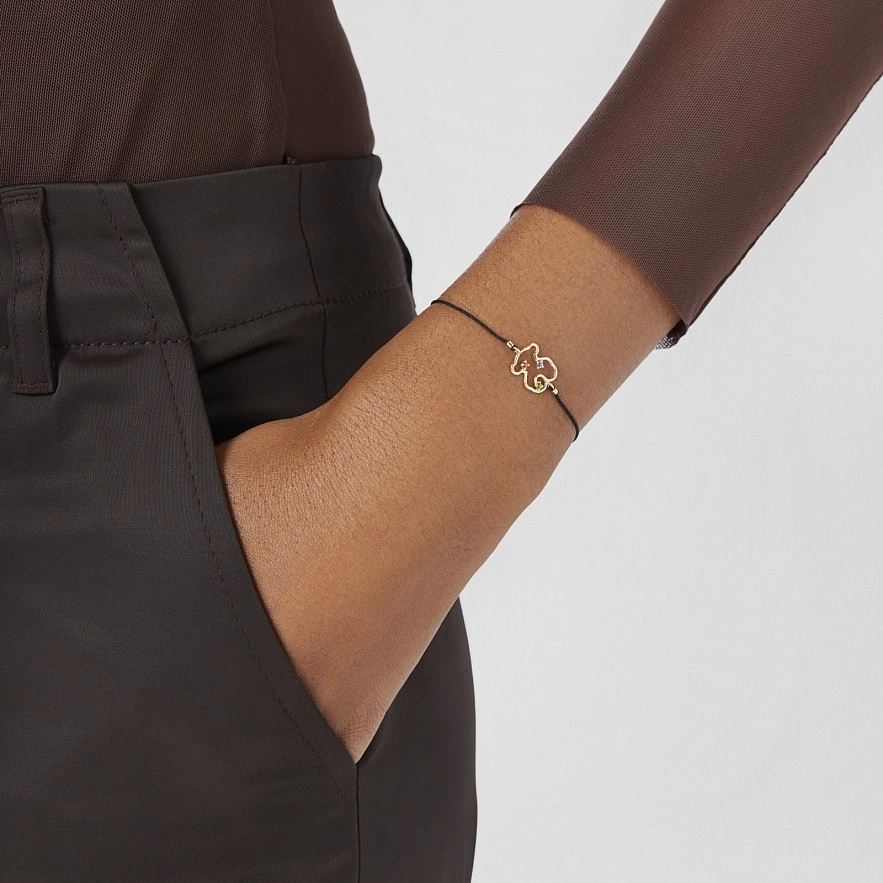 Нейлоновый браслет-мишка TOUS Tsuri из золота 750 пробы с драгоценными камнями, закрепленными вокруг силуэта медведя. Драгоценные камни: гранат, аметист и диопсид хрома. Размер драгоценных камней: 1,5 мм. Размер мишки: 12 мм. Застежка-слайдер.