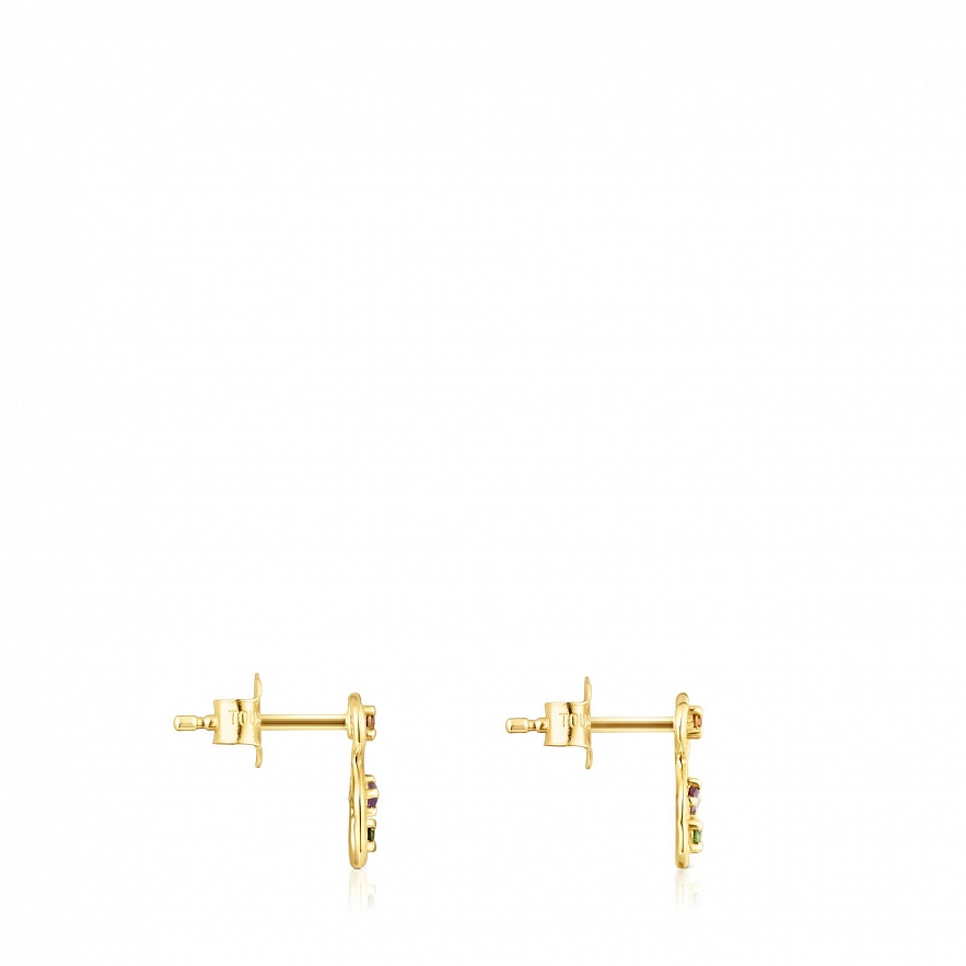 Серьги TOUS Tsuri Bear из золота 750 пробы с драгоценными камнями, расположенными вокруг силуэта медведя. Камни: гранат, аметист и диопсид хрома. Размер камней: 1,5 мм. Размер овала: 12 мм.