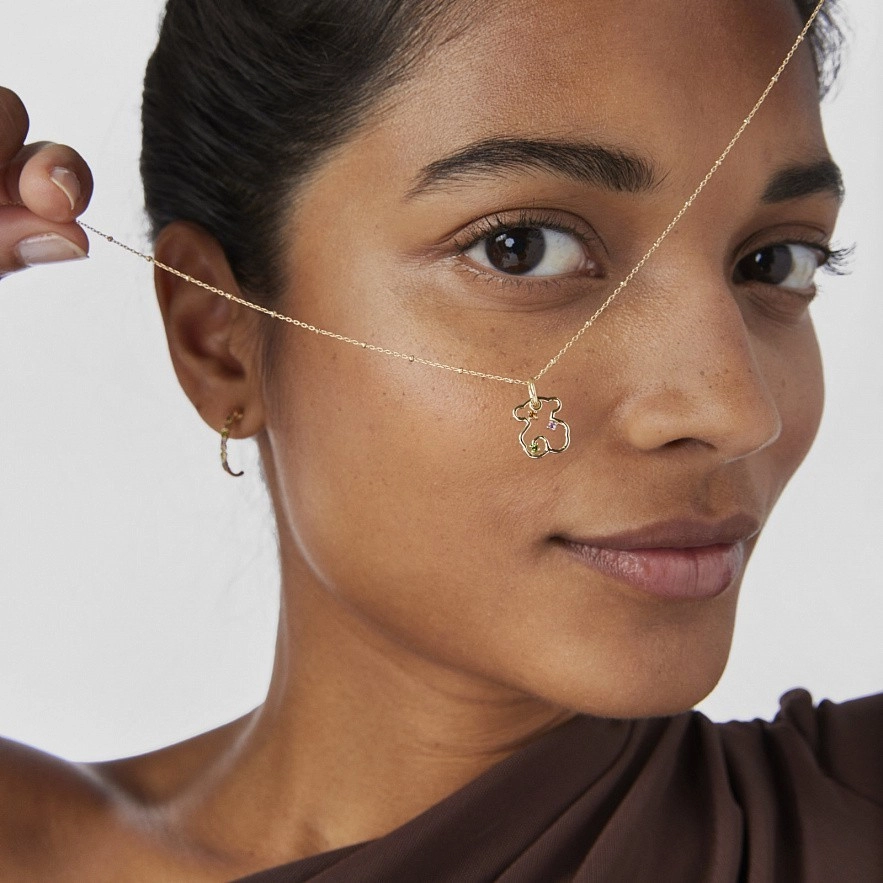 Подвеска-мишка TOUS Tsuri из золота 750 пробы с драгоценными камнями, закрепленным вокруг силуэта медведя. Камни: гранат, аметист и диопсид хрома. Размер драгоценных камней: 1,5 мм. Размер мишки: 12 мм. Цепочка в комплект не входит.