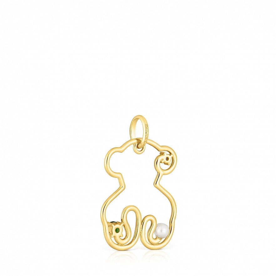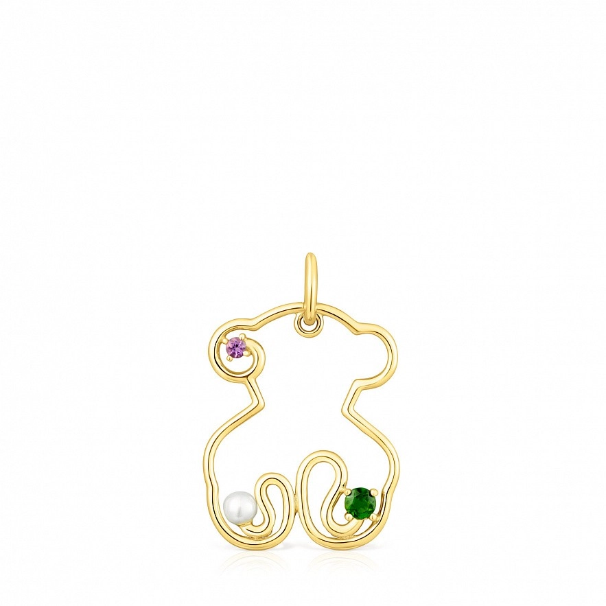 Подвеска-мишка TOUS Tsuri из золота 750 пробы с драгоценными камнями и культивированной жемчужиной. Драгоценные камни закреплены вокруг силуэта мишки. Камни: аметист и диопсид хрома. Размер драгоценных камней: 1,75 х 2,5 мм. Размер культивированного жемчуга: 3 мм. Размер мишки: 20 мм. Цепочка в комплект не входит.