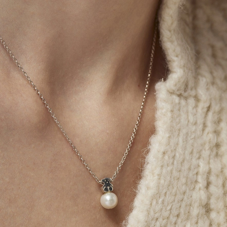 Колье и кулон TOUS Sweet Dolls из серебра высшей пробы, выращенный жемчуг 0,8 см. Вставка: 0,68 см. Длина: 45 см.