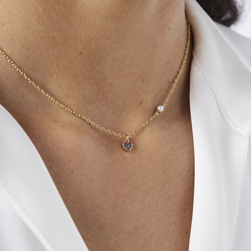 TOUS New Motif колье из серебра 925 пробы с покрытием Vermeil с мотивом сердца из аметистов диаметром 4мм и жемчужиной диаметром 3мм. Расстояние между мотивом и жемчугом: 55мм. Общая длина ожерелья: 45 см.
