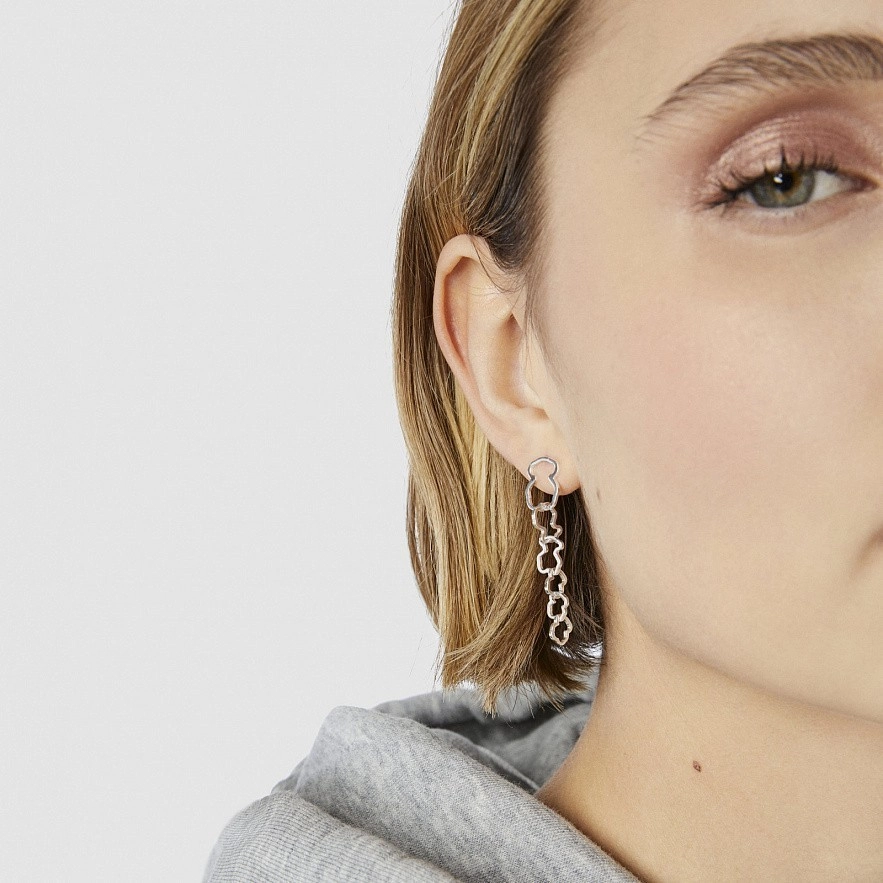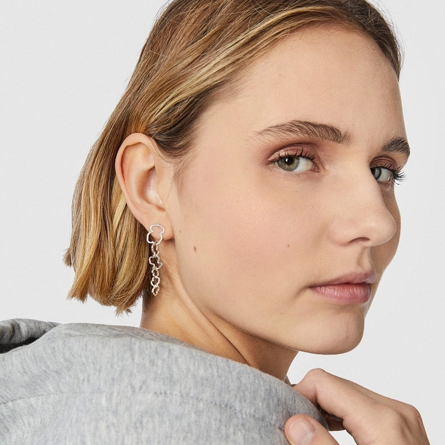 Серьги TOUS Carrusel из серебра 925 пробы с кольцами в форме медвежат в разных размерах. Застежка-пусет.