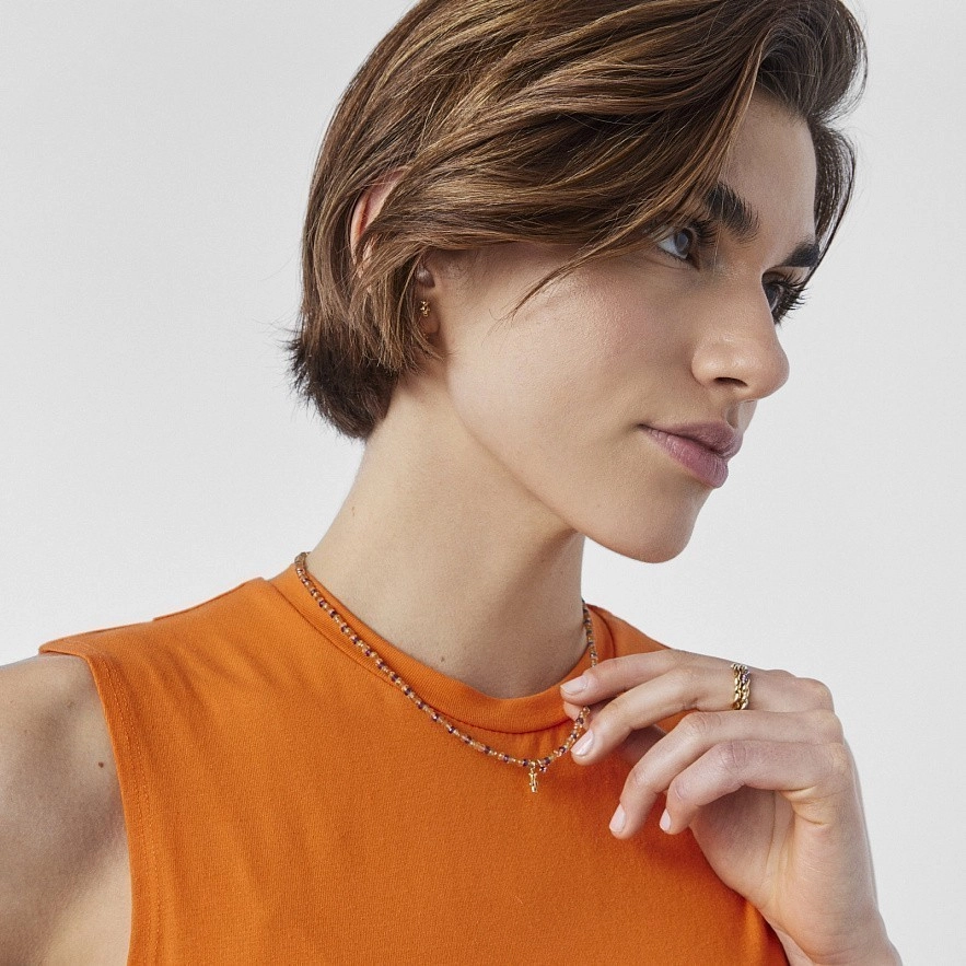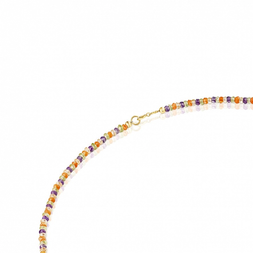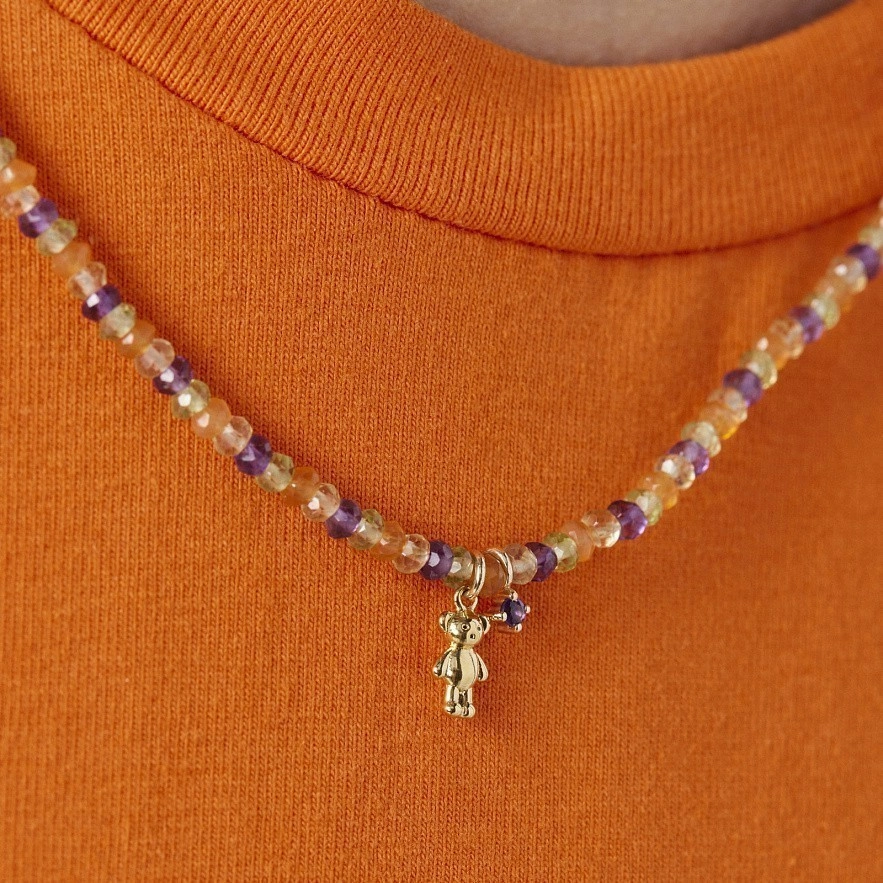 Ожерелье TOUS Teddy Bear из 18-каратного золота с аметистами, перидотами, сердоликом и цитрином и подвеской диаметром 8 мм в виде аметистового медведя. Длина: 43 см.