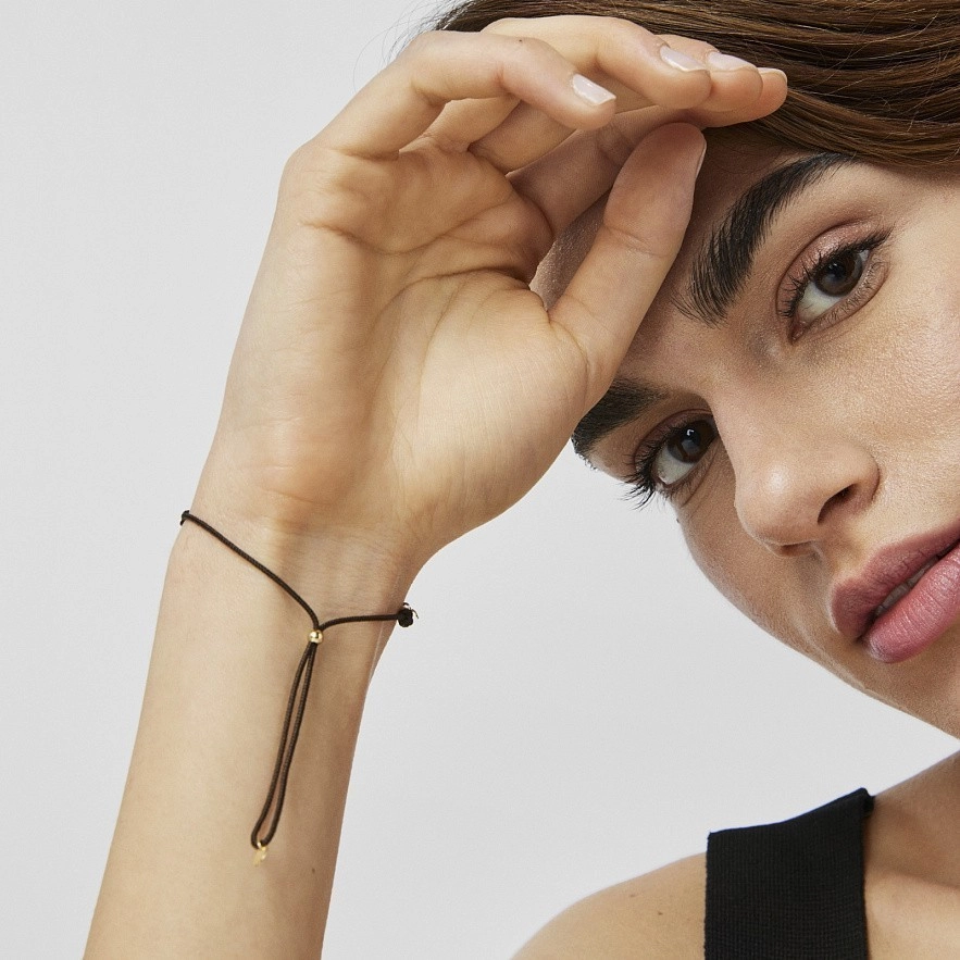 Браслет TOUS Cool Joy из черного нейлона и 18-каратного золота с тремя цепочками: одна шарикового плетения, вторая простая и третья цепочка с шариками. Мотив медвежонка: 3,5 мм. Общая длина: 12,2 см.