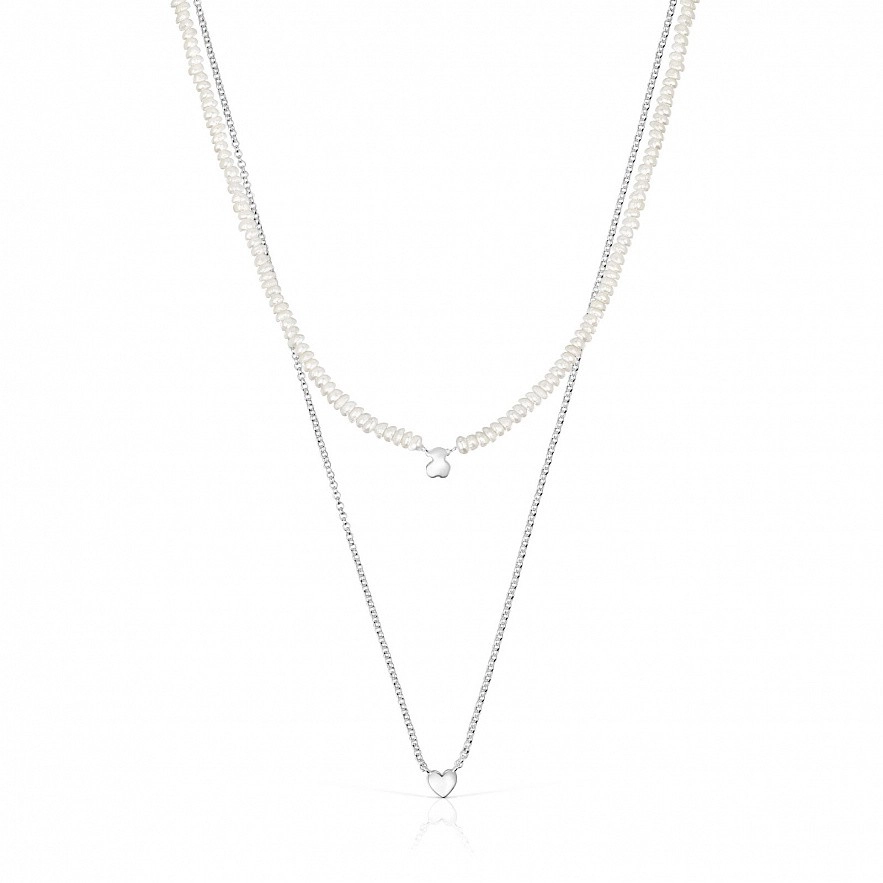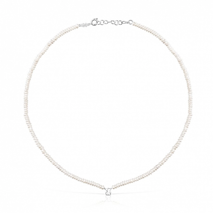Колье TOUS Mini Icons из серебра 925 пробы и культивированного пресноводного жемчуга с сердцем и мишкой 5-6 мм. Длина колье: 17,5 см.