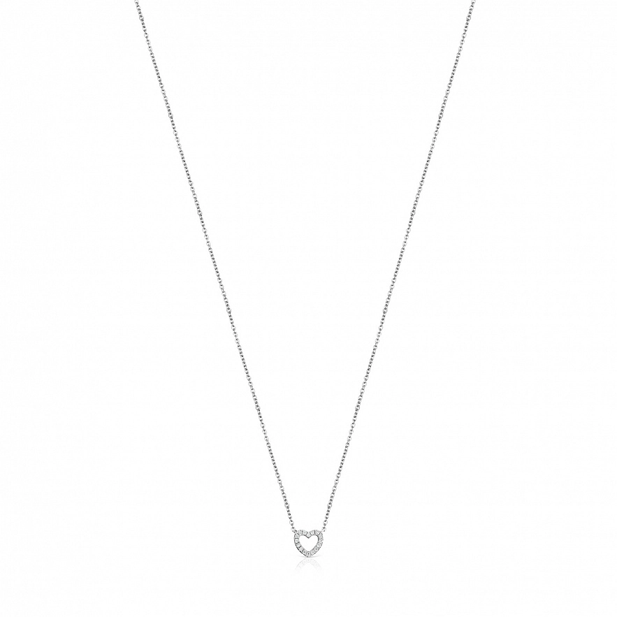 Колье TOUS Les Classiques из белого золота 18 карат с бриллиантами в виде сердца. Общий вес: 0.06 карат. Размер: 0,6 см. Длина: 45 см.