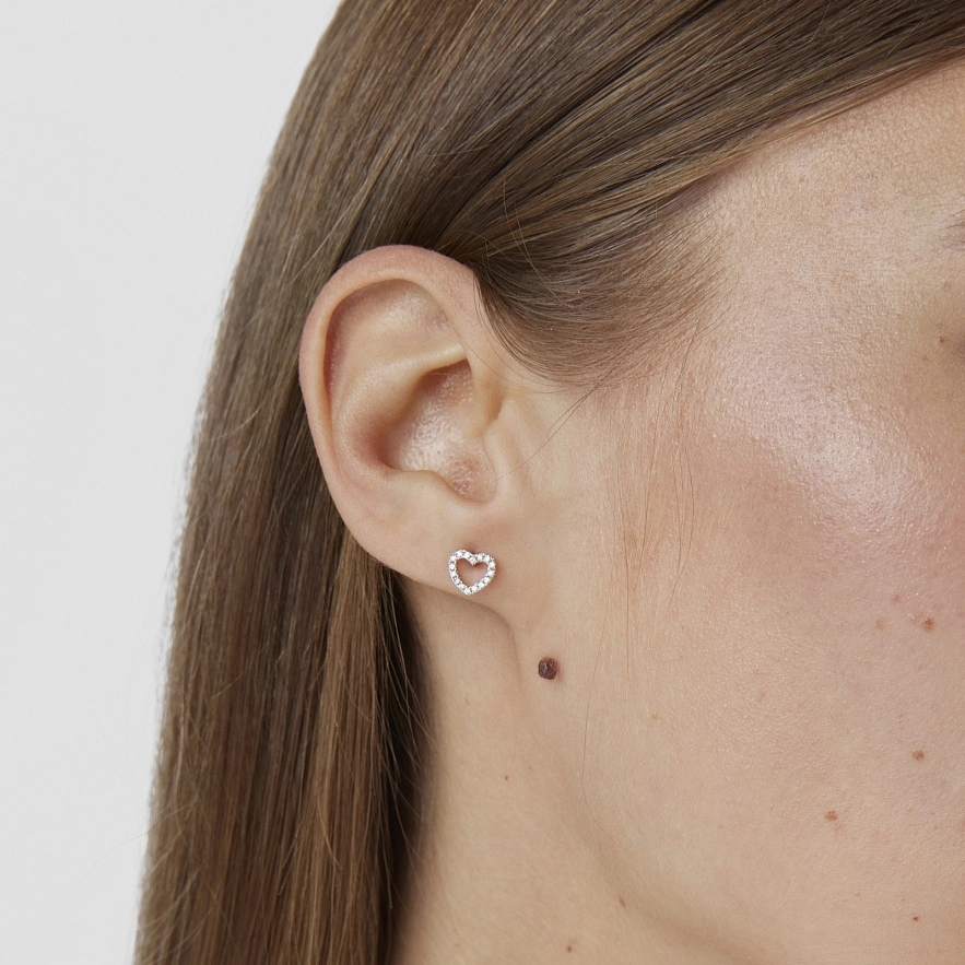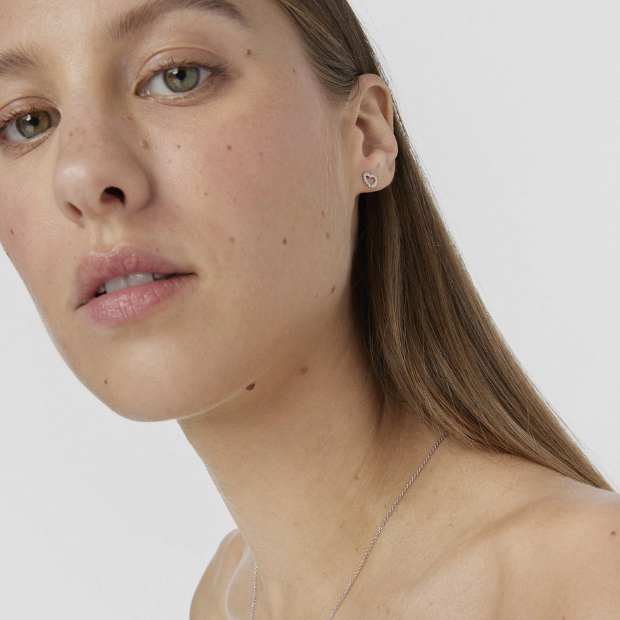 Серьги TOUS Les Classiques из белого золота 18 карат и бриллиантами в виде сердечка. Общий вес: 0.14 карат. Размер: 0,6 см.