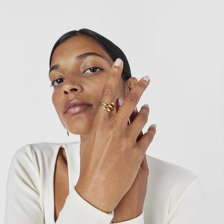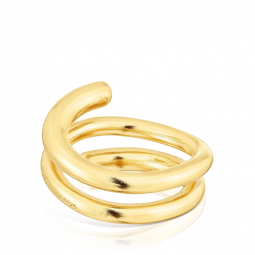 Кольцо TOUS New Hav из серебра 925 пробы с покрытием Vermeil . Верхняя ширина: 13,75 мм. Нижняя ширина: 6,25 мм. Толщина кольца: от 2,9 до 4 мм.