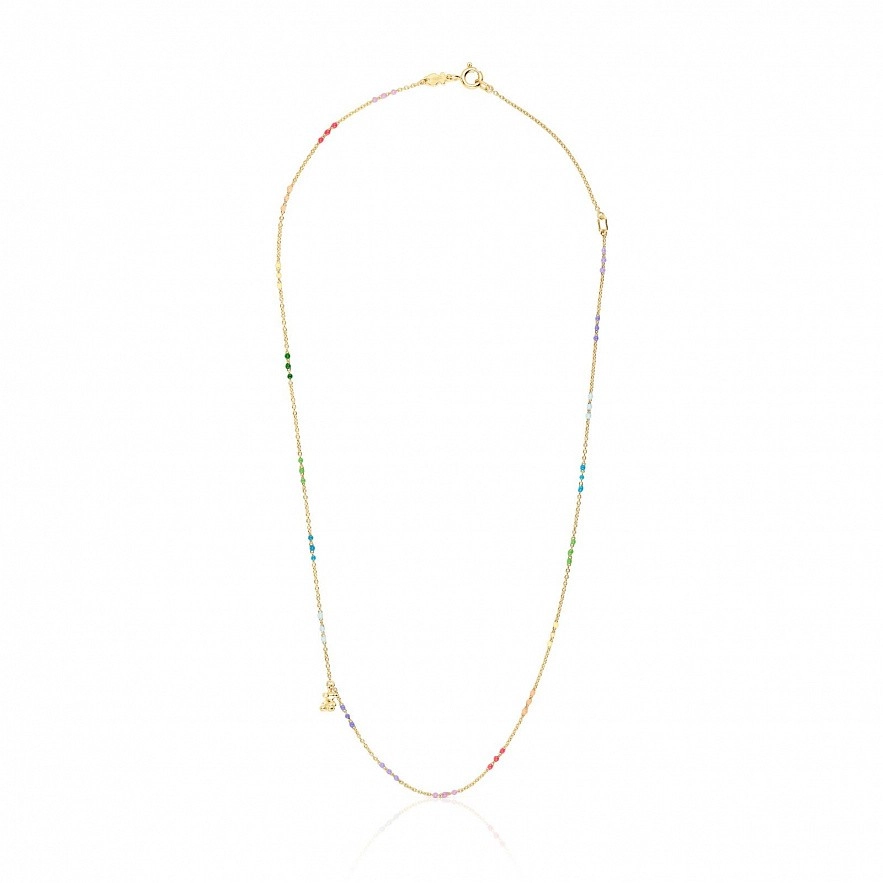 Колье TOUS Bold Bear с серебряной веремлей и эмалью разных цветов. Серебряная цепочка из вермеля с эмалированными шариками разных цветов в вкраплениях цепочки и мотива медведя в серебряном вермеле. Размер мишки: 5,35 мм. Длина ожерелья: 40-45 см. Застежка на карабин.