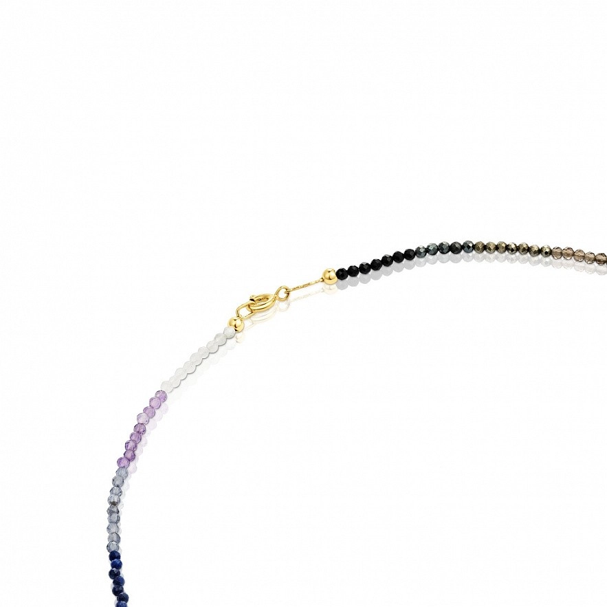 Колье TOUS Bold Bear с драгоценными камнями и мотивом медведя из серебряной вермели. Драгоценные камни: обработанный опал, родолит, гранат, халцедон, сапфир, перидот, обработанный кварцит, топаз, магнезит, горный хрусталь, апатит, лазурит, иолит, аметист, лунный камень, шпинель, гематит, пирит, дымчатый кварц, ла. Размер самоцвета: 2–2,5 мм. Размер мишки: 5,35 мм. Длина ожерелья: 40 см. Застежка на карабин.
