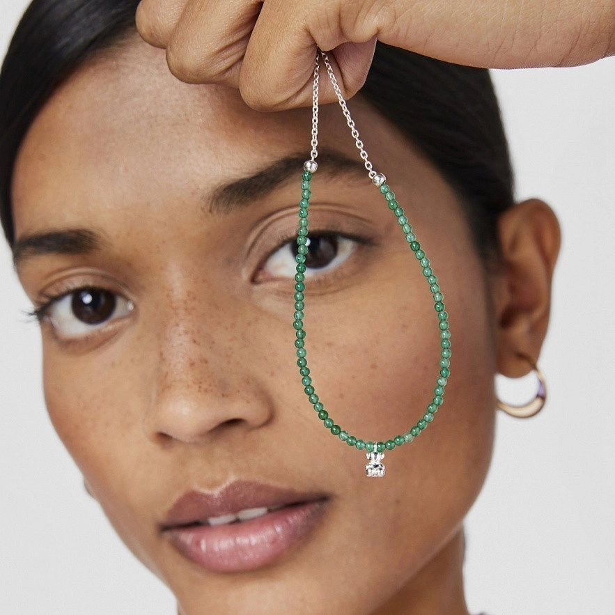 TOUS Bold Bear колье из серебра 925 пробы и обработанного зеленого халцедона с серебряной подвеской в виде медведя. Размер драгоценных камней: 2-2,5мм. Размер медведя: 5,35мм. Длина колье: 42-45 см. Застежка пружинное кольцо.