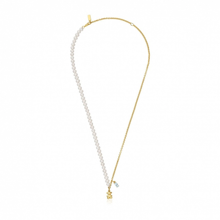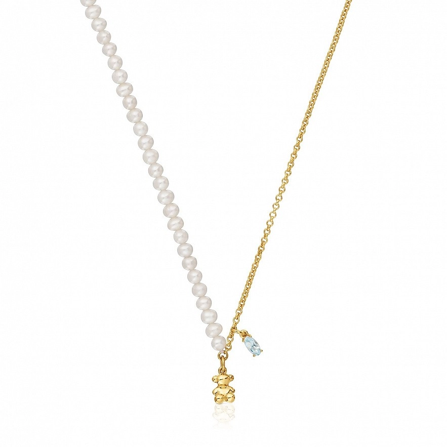 Колье TOUS Bold Bear из серебра 925 пробы с покрытием Vermeil , пресноводным культивированным жемчугом и голубым овальным топазом. Размер культивированной жемчужины: 4-4,5мм. Размер топаза: 6х3 мм. Размер мишки: 8мм. Длина ожерелья: 40-45 см. Пружинная застежка-кольцо. Ожерелье изготовлено из стерлингового серебра 925 пробы, покрытого золотом 18 карат толщиной от 3 до 5 микрон. Это качество гарантирует большую долговечность драгоценности.