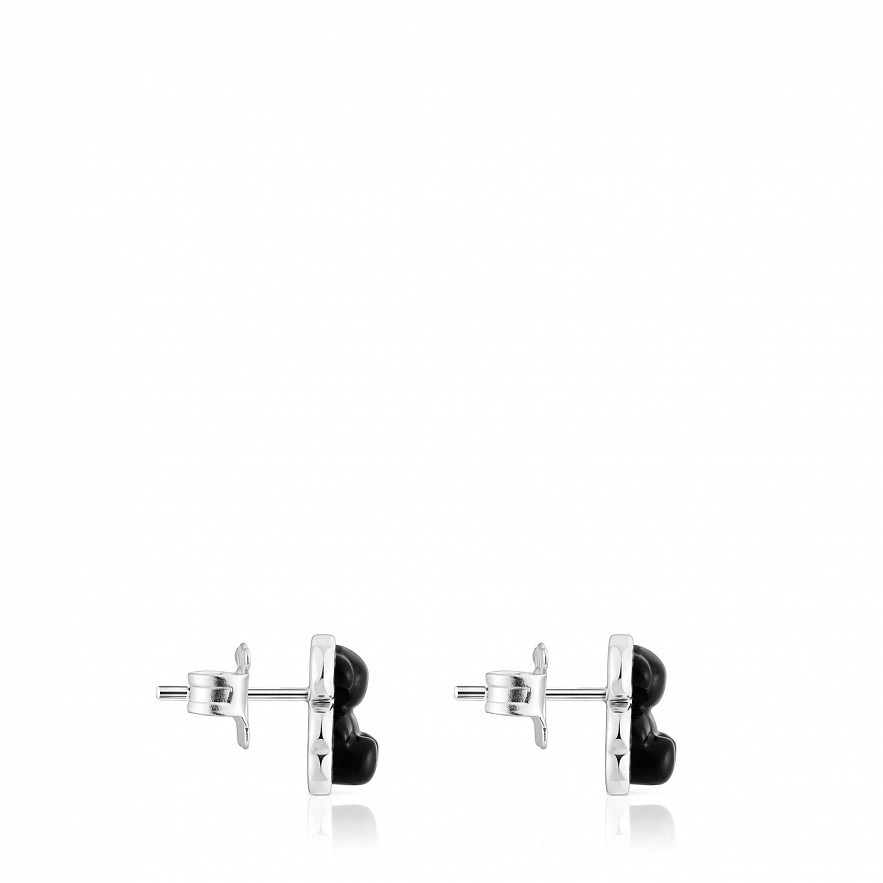 Серьги TOUS Bold Bear из серебра с ониксом в форме медведя. Размер мотива медведя: 10 мм. Застежка-пусет.