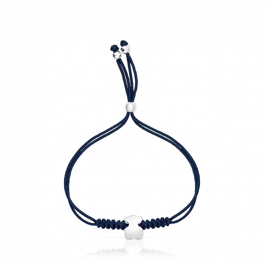 Браслет TOUS Bold Motif из темно-синего нейлона и серебряного медведя. Размер мотива: 10,5мм. Застежка-слайдер.