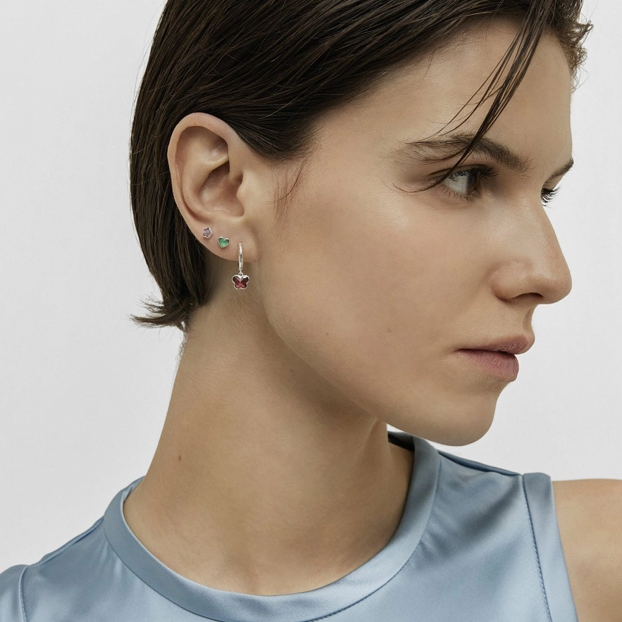 Серьги-кольца TOUS Bold Motif из стерлингового серебра с мотивом бабочки и ограненным кабошоном из родолита размером 5,4 мм. Внутренний диаметр: 10 мм. Размер бабочки: 6 мм. Примерная длина серьги: 20 мм.