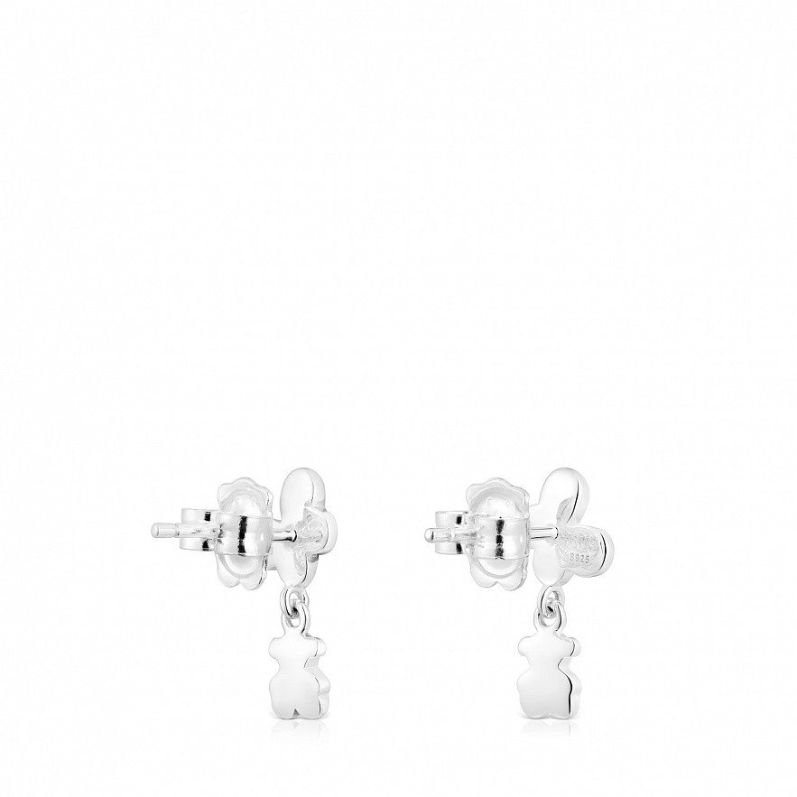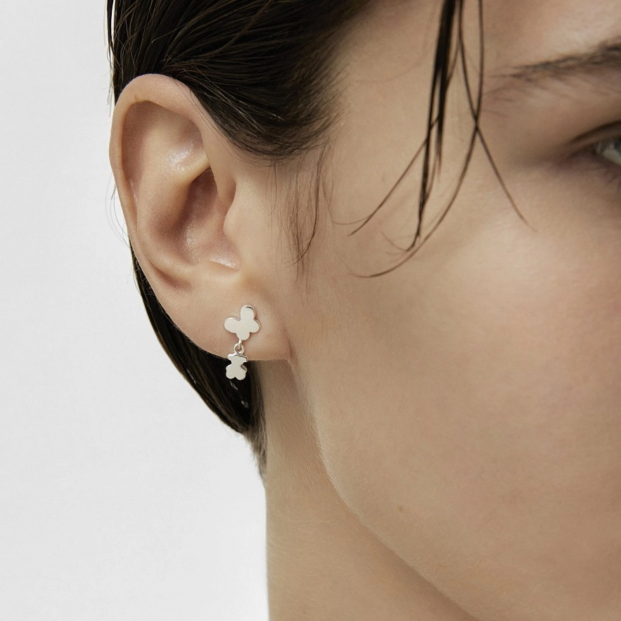 Серьги Bold Motif из стерлингового серебра с подвесной бабочкой и мотивом медведя. Размер мотивов: бабочка 6 мм и мишка 5,5 мм. Длина серьги: 12 мм. Застежка-пусет.