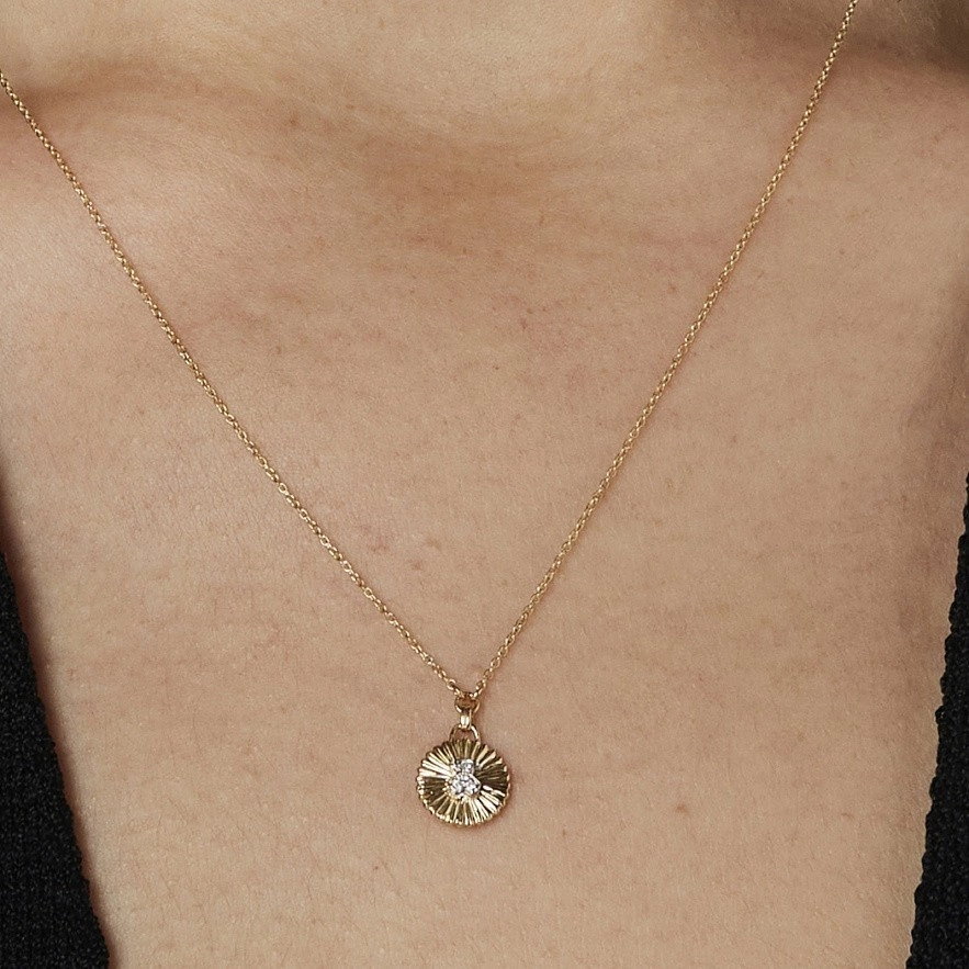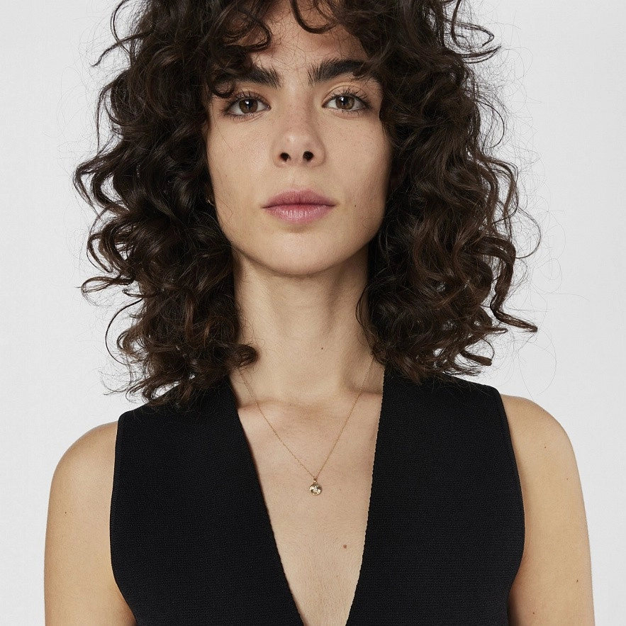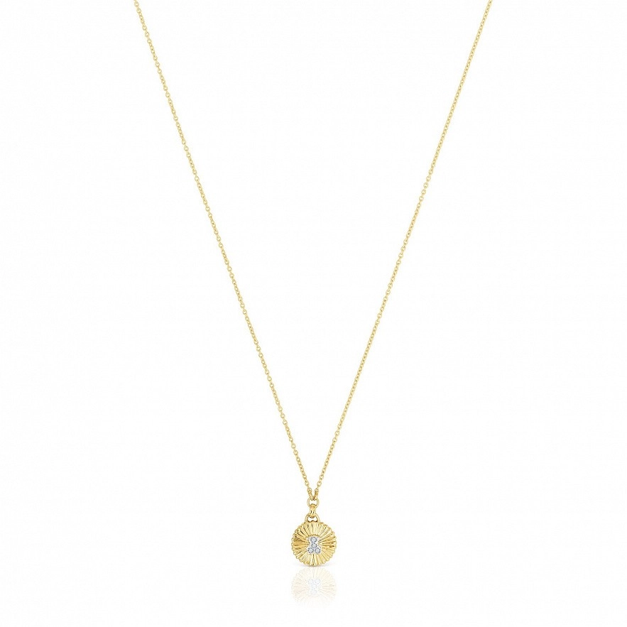 Колье TOUS Iris Motif из 18-каратного золота и мотив кулона с бриллиантами весом 0,01 карата, образующих силуэт медведя в центре. Бриллиантовая огранка: бриллиант. Качество бриллианта: H/SI. Размер медали: 8 мм. Размер медведя: 3,5 мм. Длина ожерелья: 42-45 см. Застежка на карабин.
