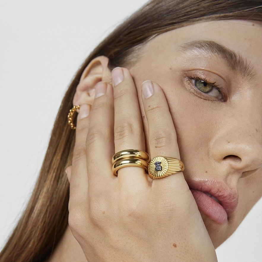 Кольцо TOUS Iris Motif с печаткой из серебра 925 пробы с покрытием Vermeil , украшенное силуэтом иолитового медвежонка. Размер подвески-медвежонка: 5 мм. Верхняя ширина: 12 мм. Нижняя ширина: 7,5 мм. Толщина кольца: 3 мм.