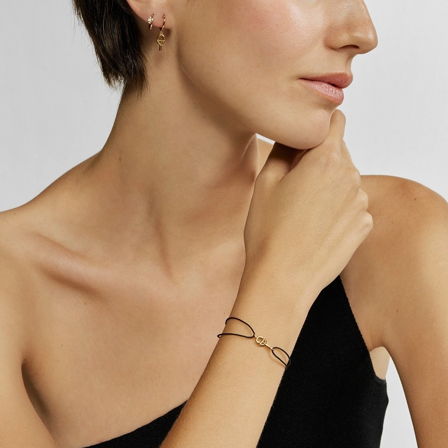 Браслет TOUS Manifesto из 18-каратного золота с черным нейлоновым шнуром и бриллиантами 0,005 карата на мотиве. Качество бриллиантов: H/SI. Размер мотива: 10 мм. Застежка-слайдер.