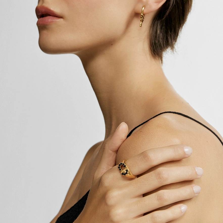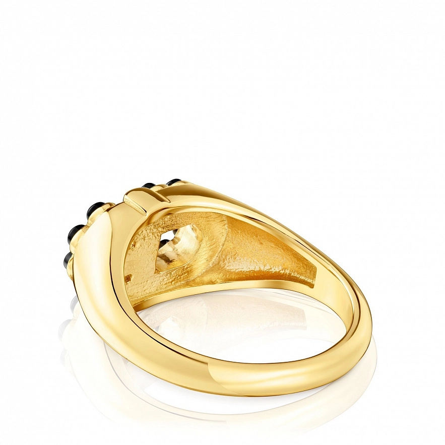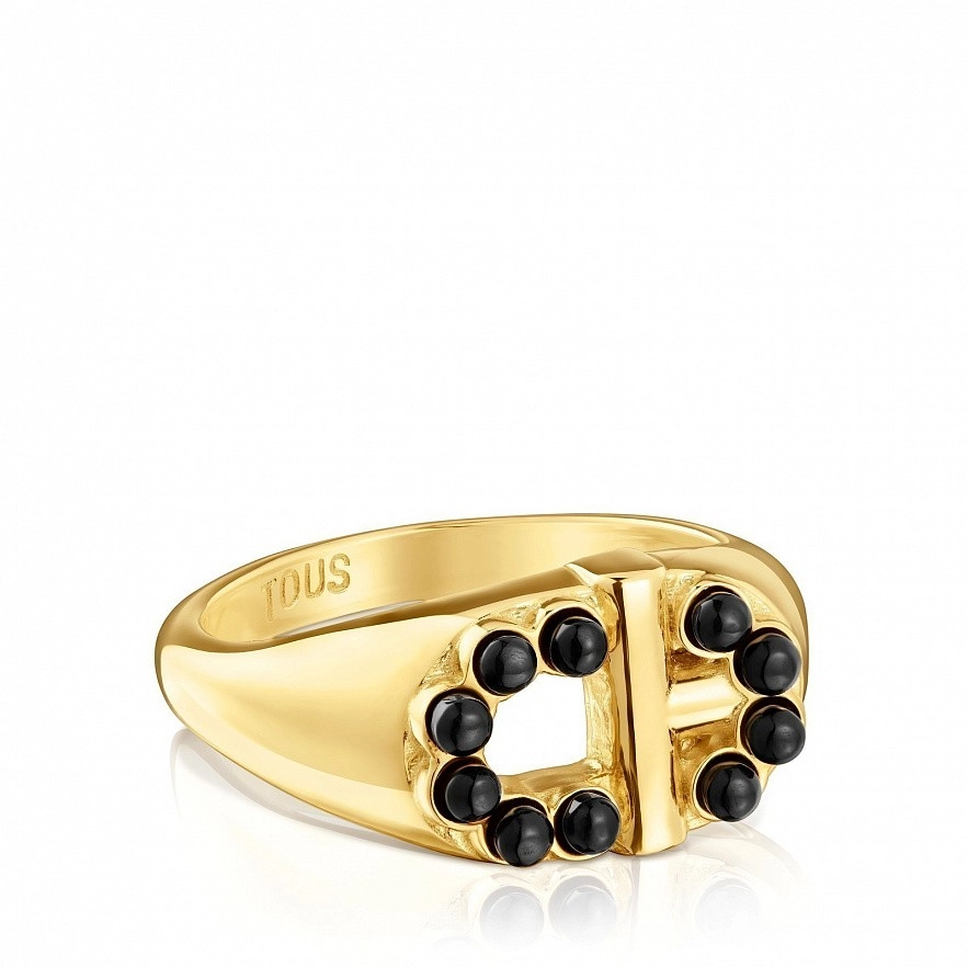 Кольцо TOUS Manifesto из серебра 925 пробы с покрытием Vermeil , с ониксом. Размер 14.